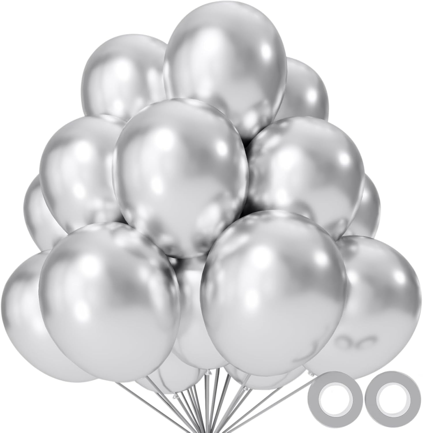110pcs Metallic silver Balloons, Metallic silver Latex Balloons 12 inch, silver Balloon for Birthday Party Baby Shower Wedding(with 2 Ribbons).