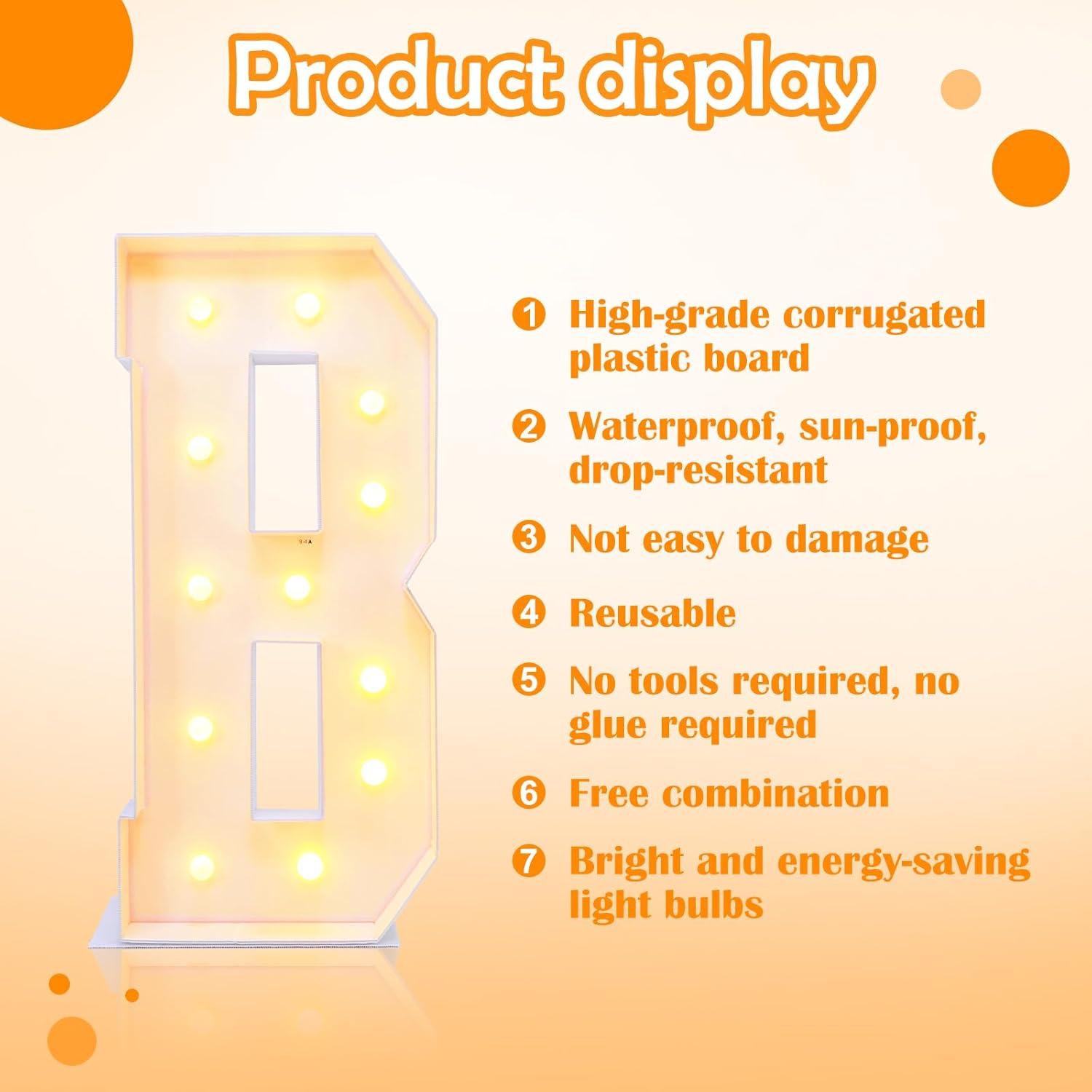 • Large Marquee for Letters 4 Feet Tall: Why settle for ordinary? Get premium corrugated board, stunning large light up letters that will elevate your party decor and leave a lasting impression. 4ft marquee for letters add style and fun to your party