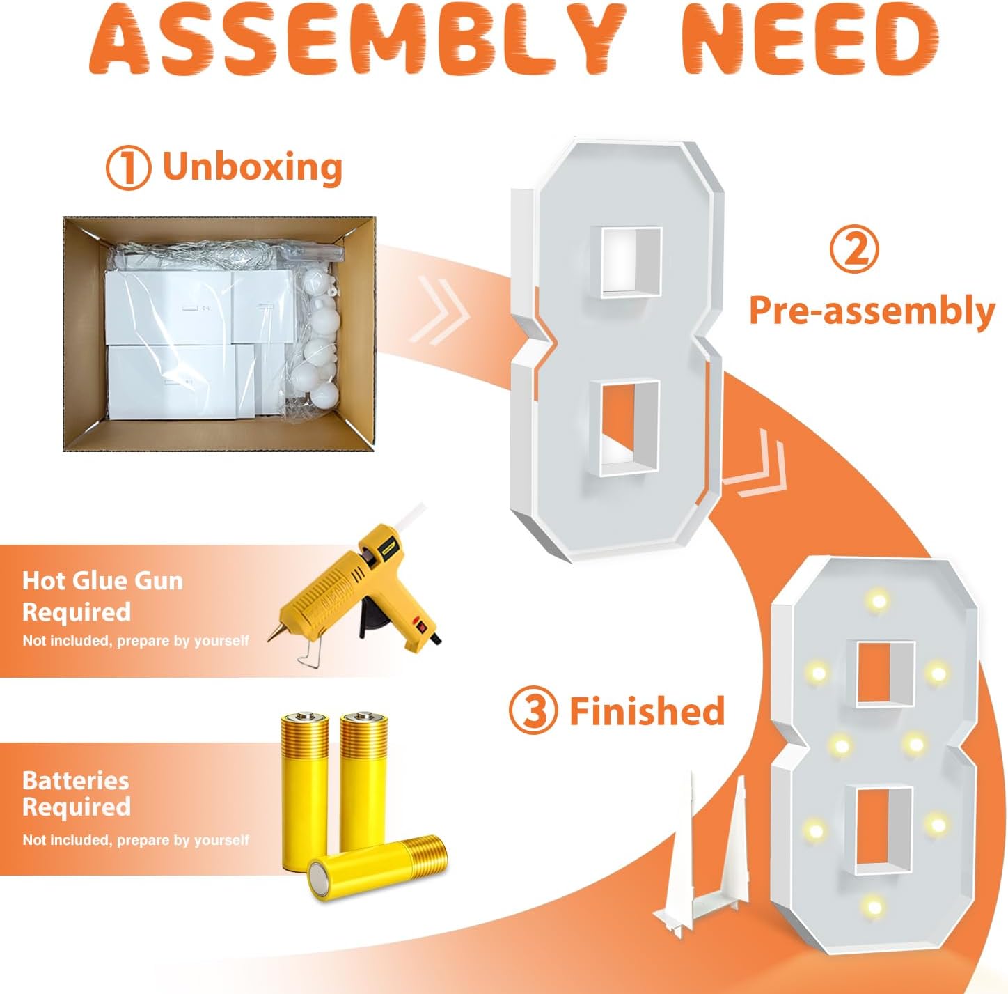• GOOD CUSTOMER SERVICE: Our marquee LED numbers are labeled with numbers for a seamless and error-free setup, so you won't get confused when assembling. If you encounter any problems, please contact us immediately, we offer 24/7 customer service.