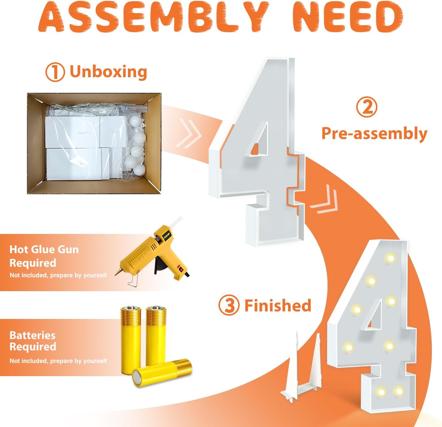 • EASY TO ASSEMBLE: The package includes pre-cut foam boards, light strings and instructions. Each foam board has slots and is numbered, so you can match them according to the 2 same numbers. All you need to do is to prepare a hot glue gun and 3 AA batteries, follow the step-by-step instructions or online video for a hassle-free assembly. Decorate the party with your kids or friends and enjoy the DIY fun. (Note: Glue gun, glue and batteries are not included)