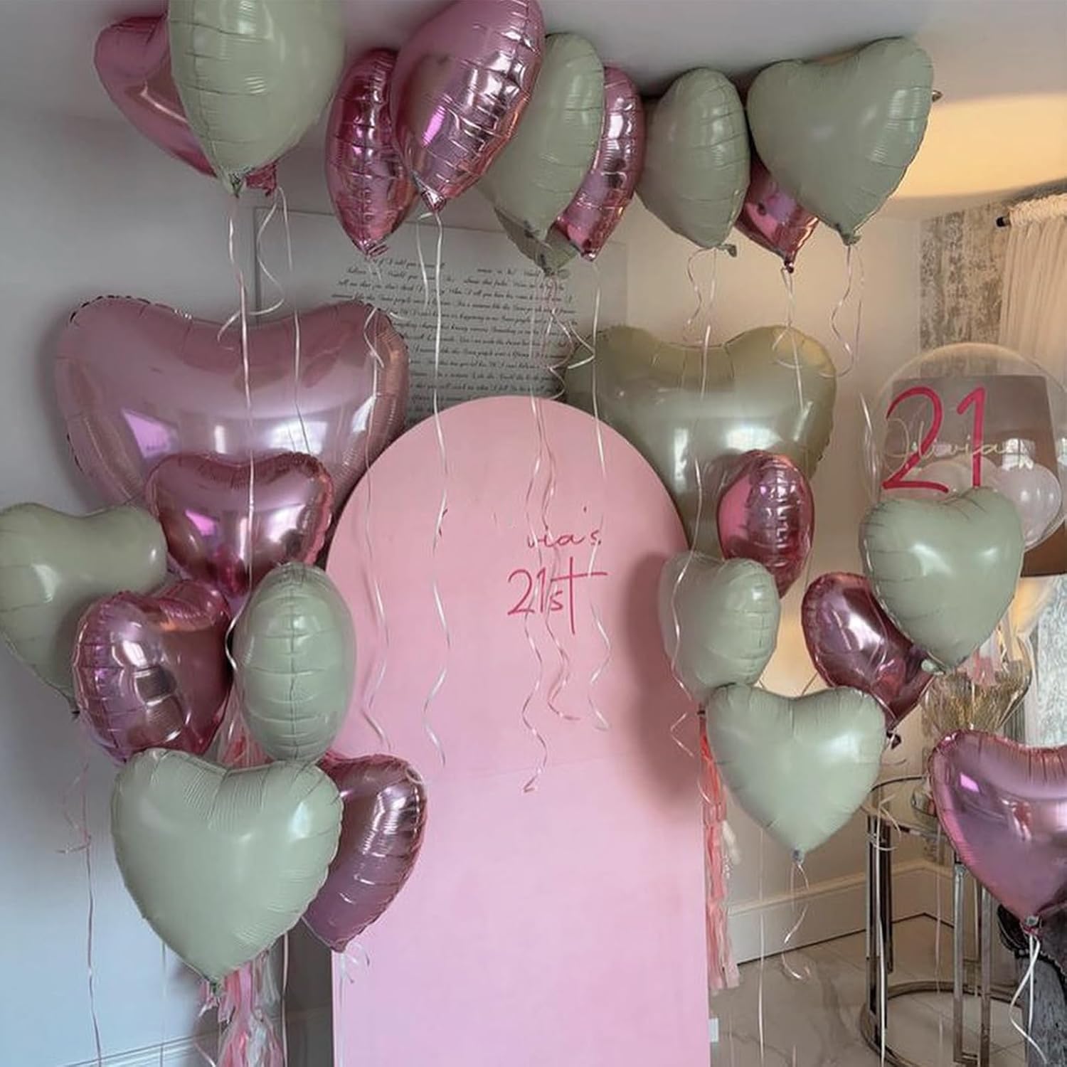 • Boho Pink Cream Heart Balloons: 12 Packs 18 inch foil balloons. Included 4pcs light pink foil balloons, 4pcs baby pink foil balloons, 4pcs beige foil balloons and 1pc ribbons. Hearts foil balloons are the optimal choice for any party occasion