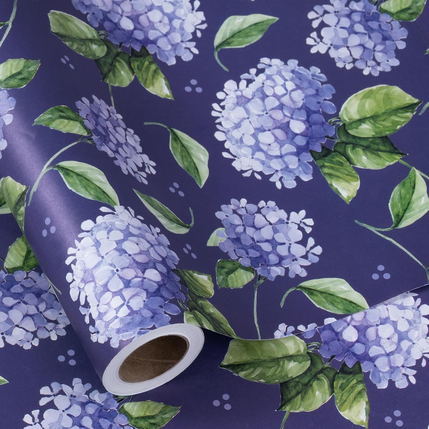 RUSPEPA Floral Wrapping Paper Roll for Women, Mini Roll, Elegant Hydrangea Flower Design Kraft Gift Wrap Paper Perfect for Birthday, Spring, Wedding, Bridal Shower, Mother's Day, 17 Inch x 16.4 Feet