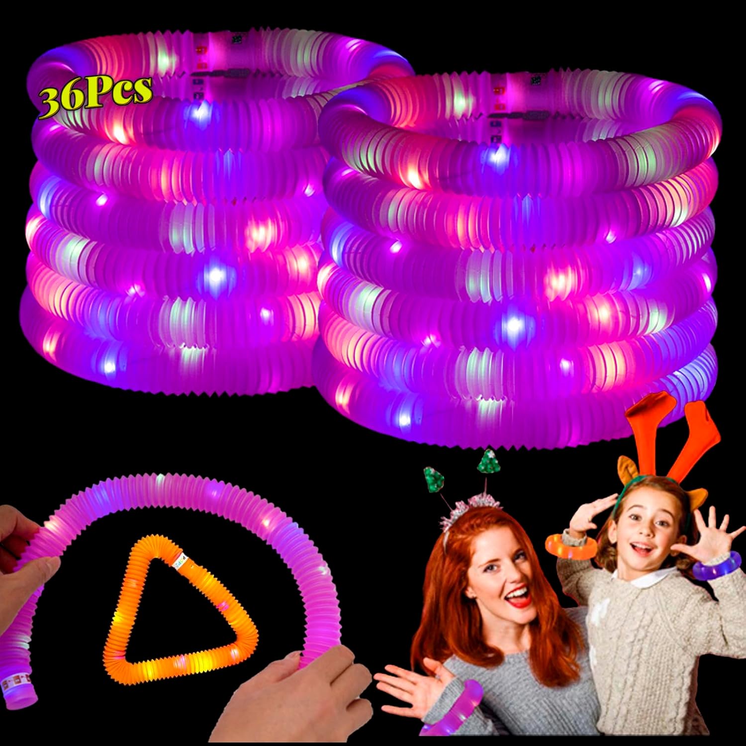 • When you stretch or twist the led pop tubes, it will make a satisfying "pop" sound and special touch, which can help to calm down and relieve anxiety by diverting attention to popping sounds. Nice choice as a playing kids party favors for indoor and outdoor