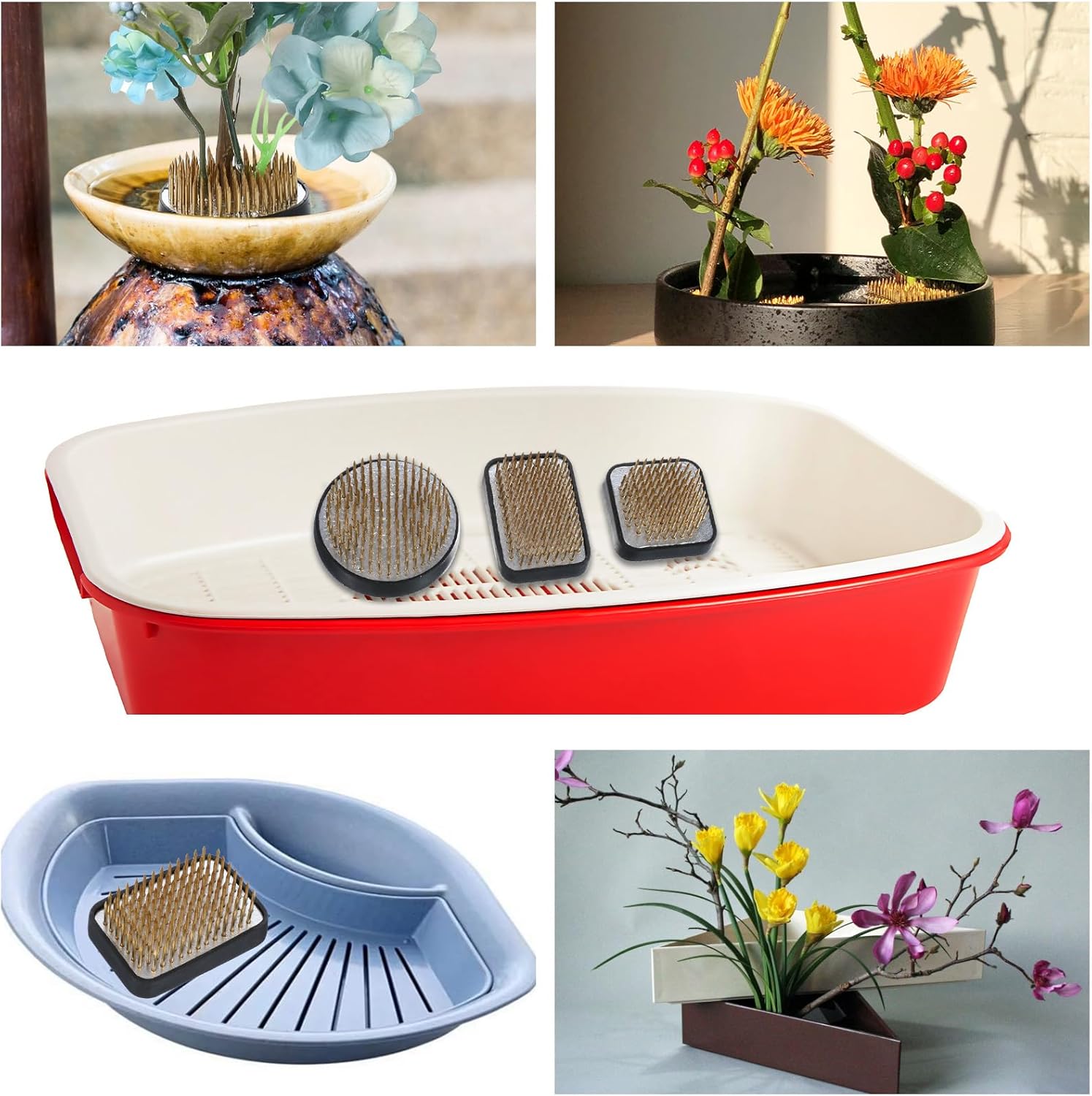 • ★Application: In a container, it can keep flowers or plants upright. The square flower frog is suitable for shallow containers, small-caliber vases, and can be used for Japanese ikebana courses, while rectangular and round flower frogs have larger sizes, suitable for open flower bowls, and can be used for moribana courses.
