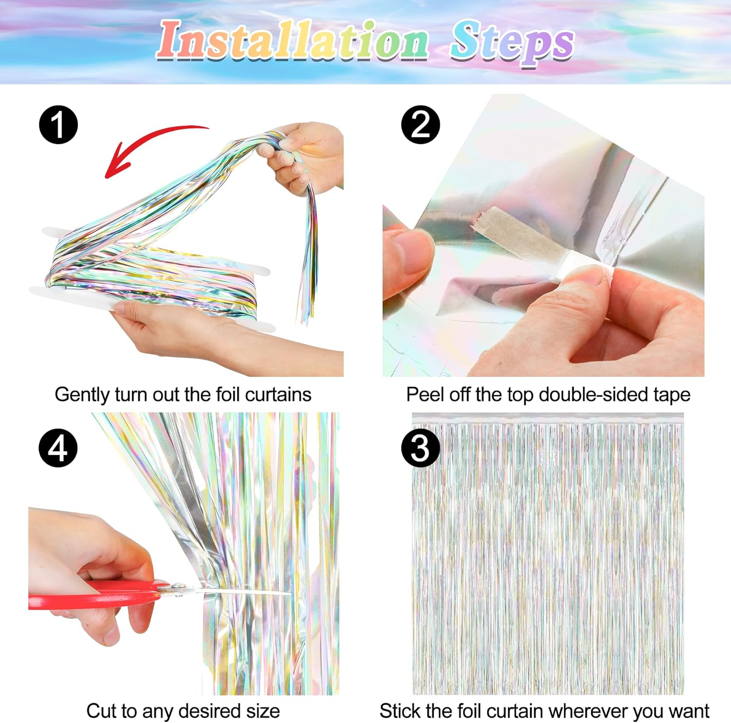 • Easy to Install: The Valentines foil curtains come with adhesive paper on the top, which can be simply peeled and pasted on any smooth surface.