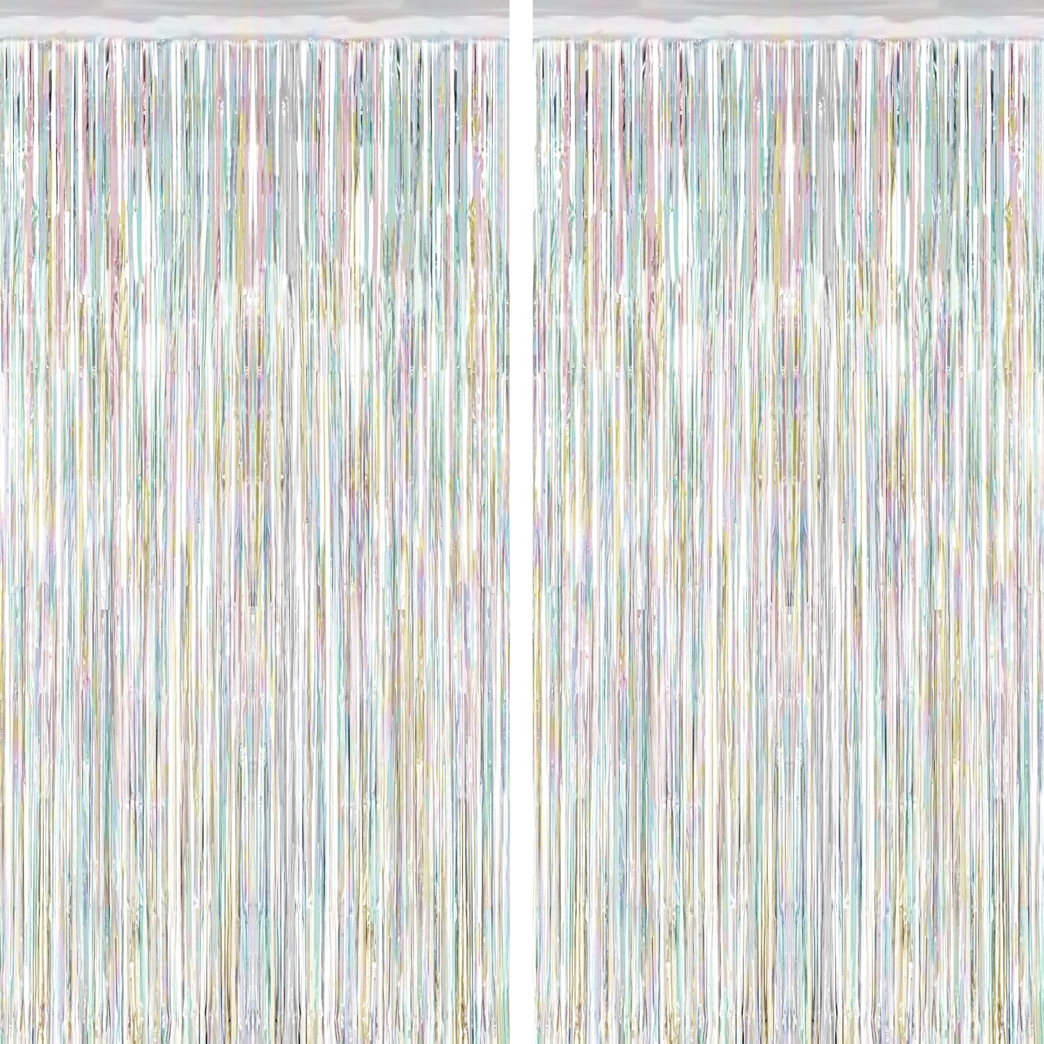 2 Pack Backdrop Curtains, 3.28 FT x 7.05 FT Laser Silver Fringe Curtains, Metallic Tinsel Foil Curtains Party Streamer, Photo Backdrop Party Decorations Bithday Photo Booth Props