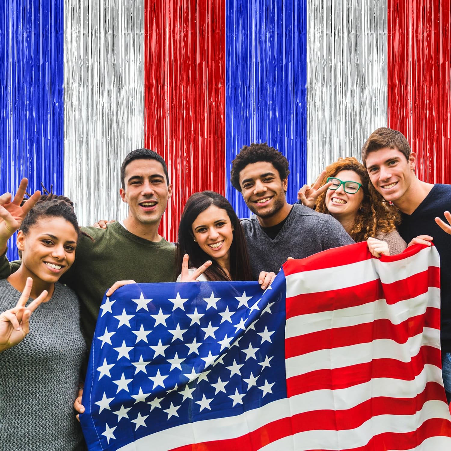 • Multiple Colors: The color combination of blue, silver, and red symbolizes national pride, and the metallic finish gives these foil curtains a more vibrant look for 4th of July photo props.