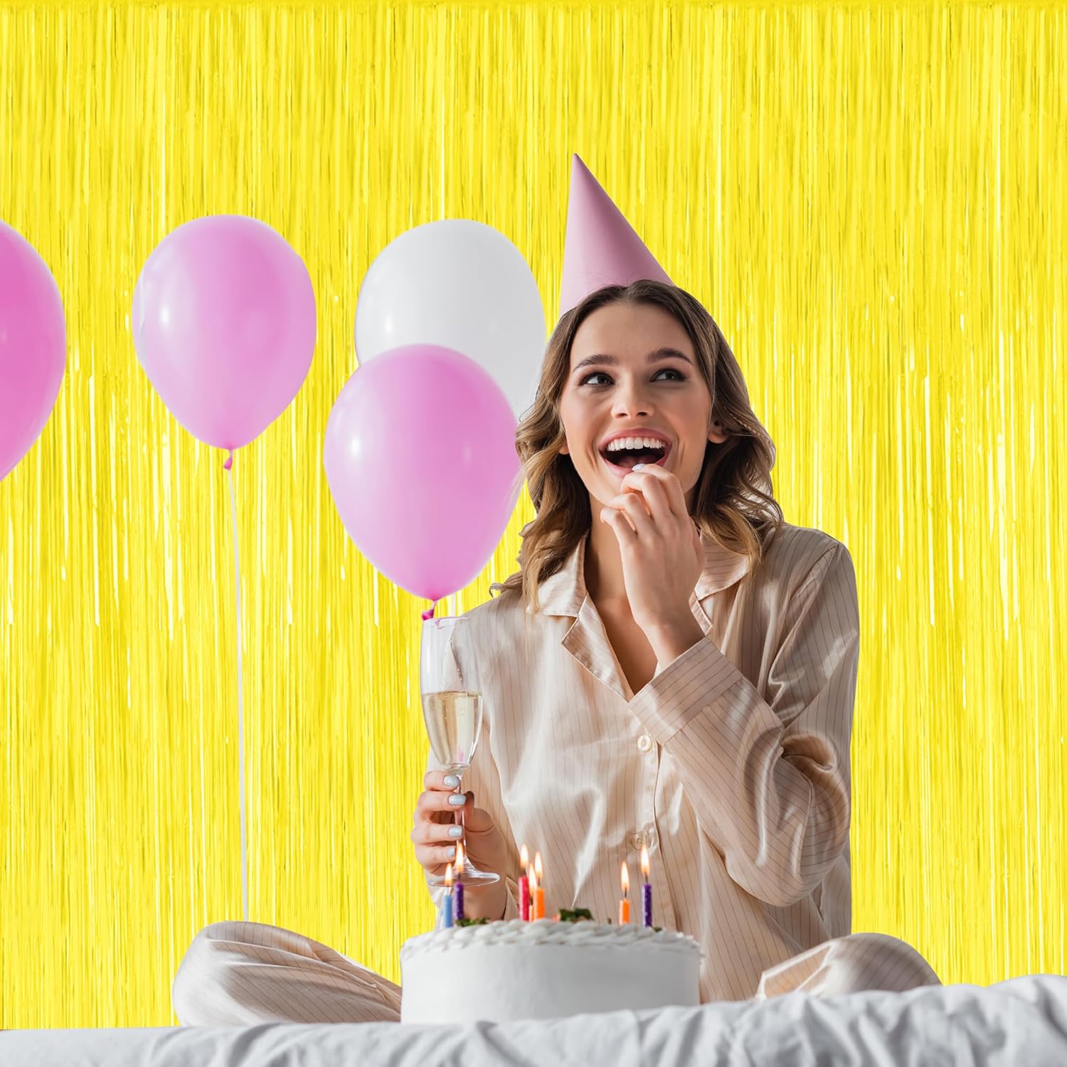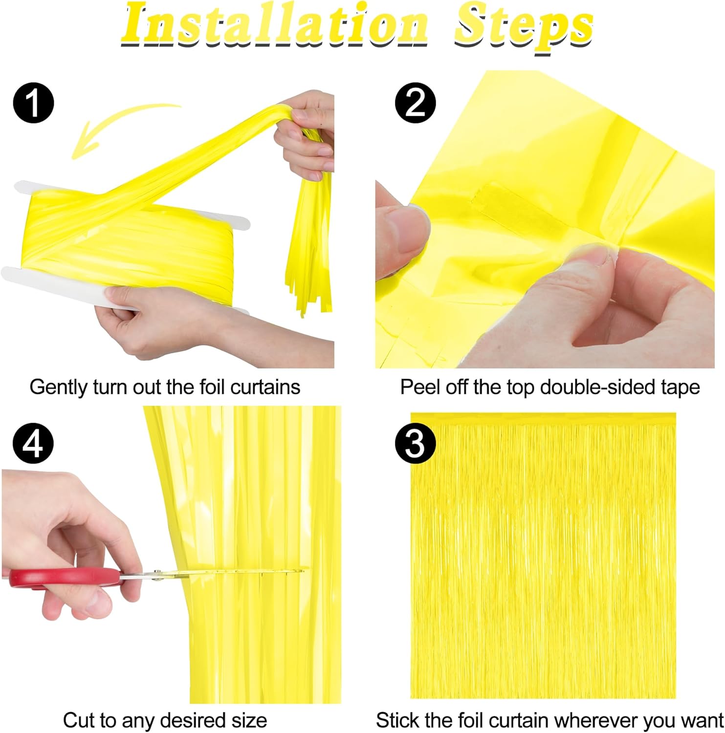 • Colorful Design: Each fringe backdrop are yellow color, with a reflective metallic finish, both fashionable and vibrant, and are suitable for your photo props.