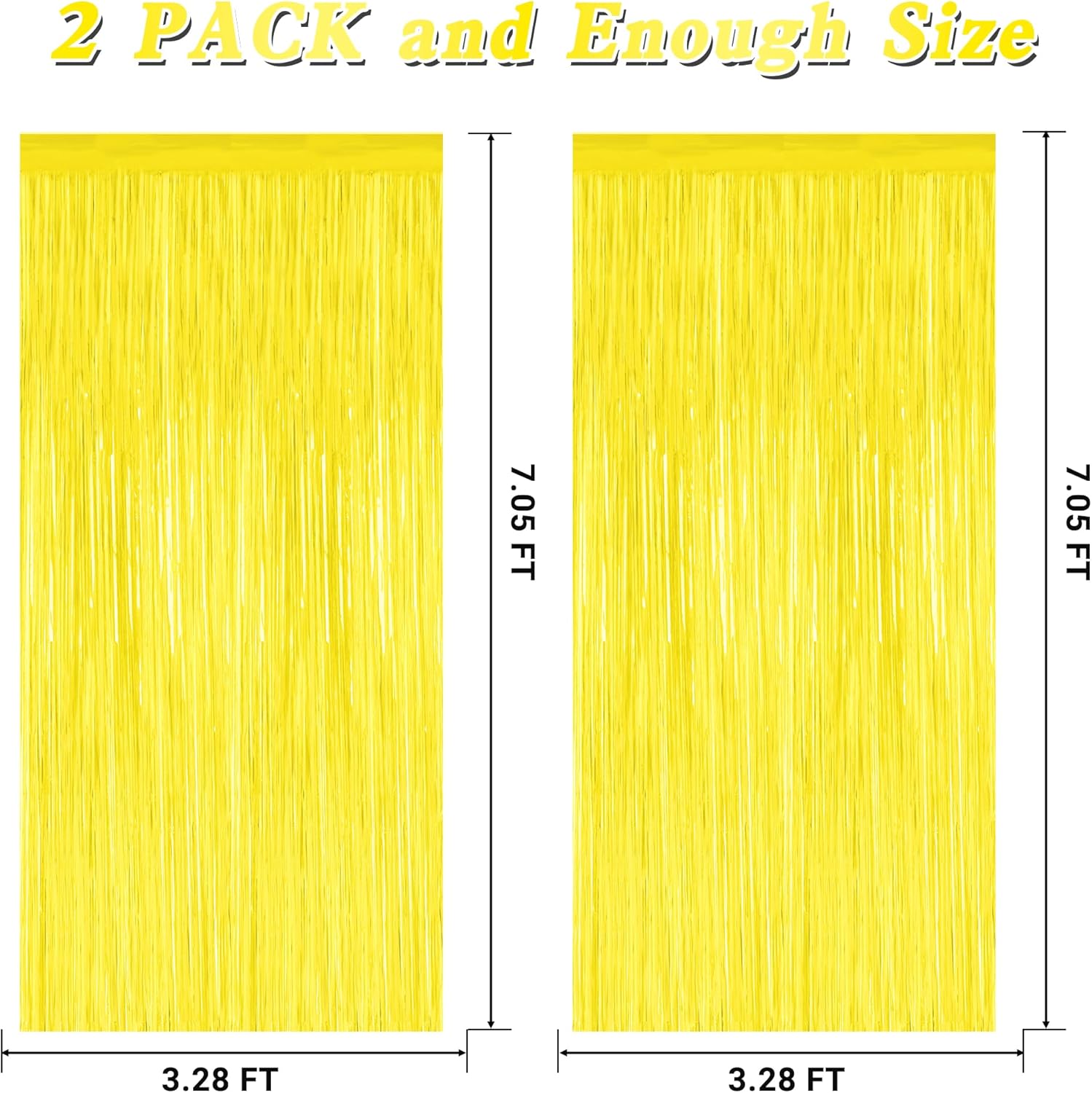 2 Pack Backdrop Curtains, 3.28 FT x 7.05 FT Yellow Color Tinsel Backdrop, Metallic Foil Backdrop Fringe Curtains Party Streamer, Party Decorations Photo Backdrop for Birthday