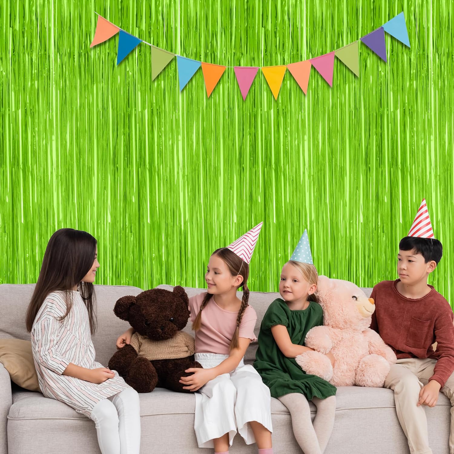 • Colorful Design: Each fringe curtains are grass green color, with a reflective metallic finish, both fashionable and vibrant, and are suitable for your party decorations.