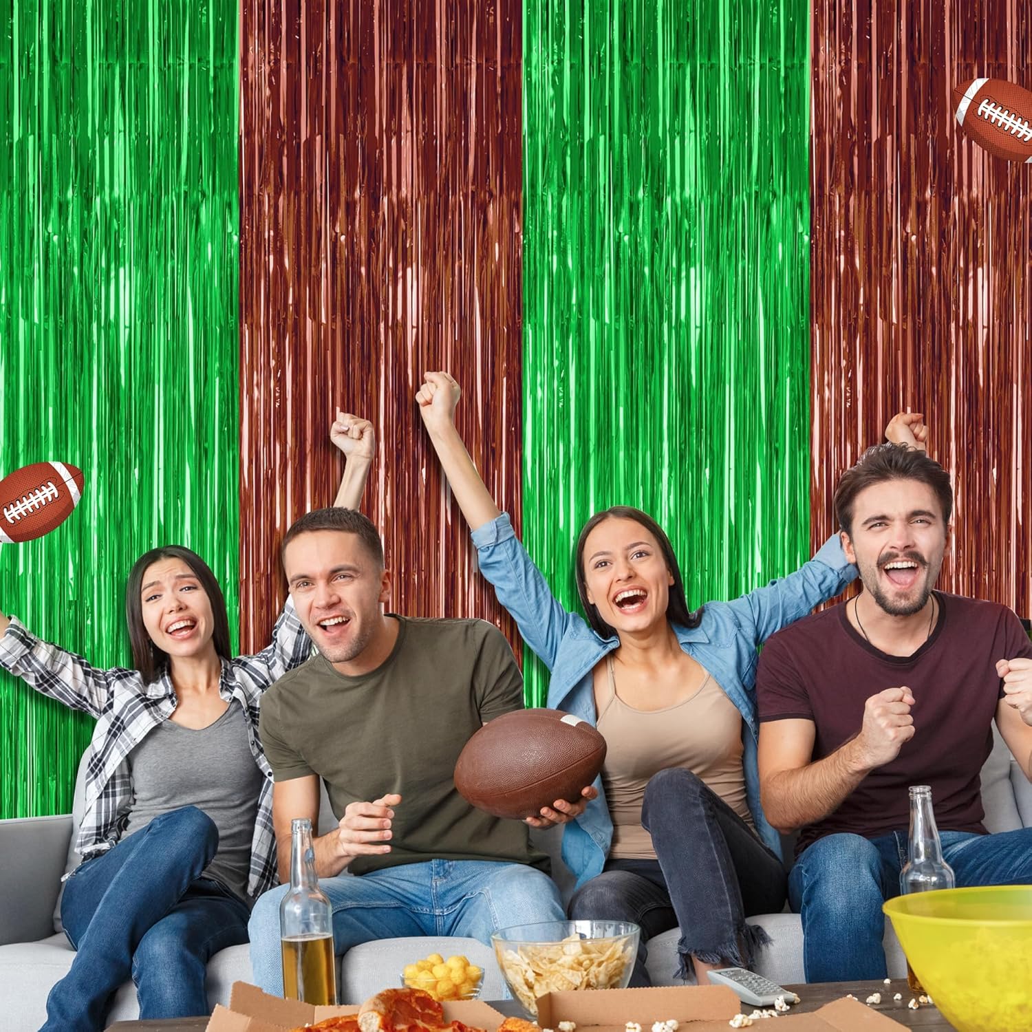 • Widely Use: These tinsel backdrop are perfect for football photo backdrop, football party decorations create a festive atmosphere at big sporting events, football celebrations, and so on.