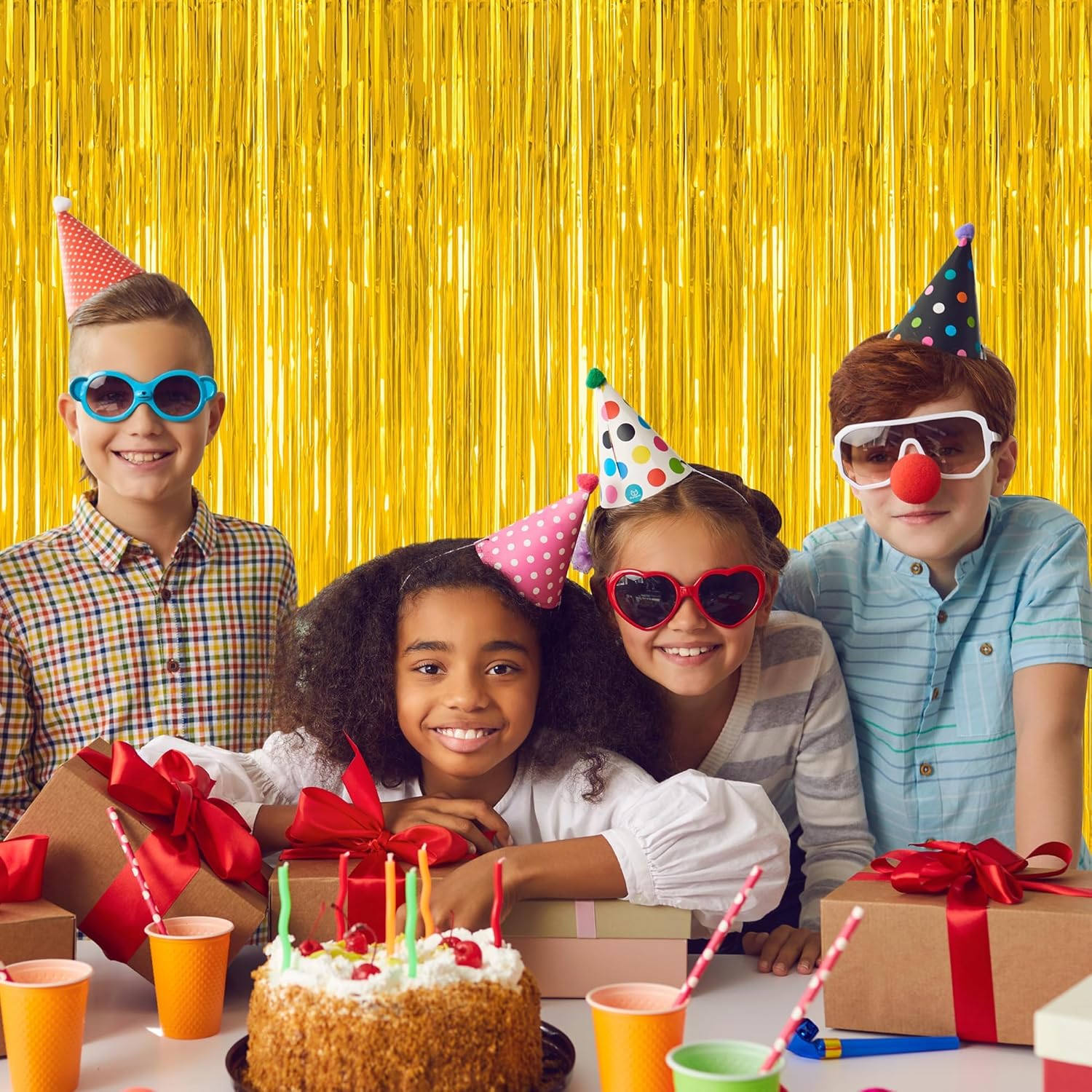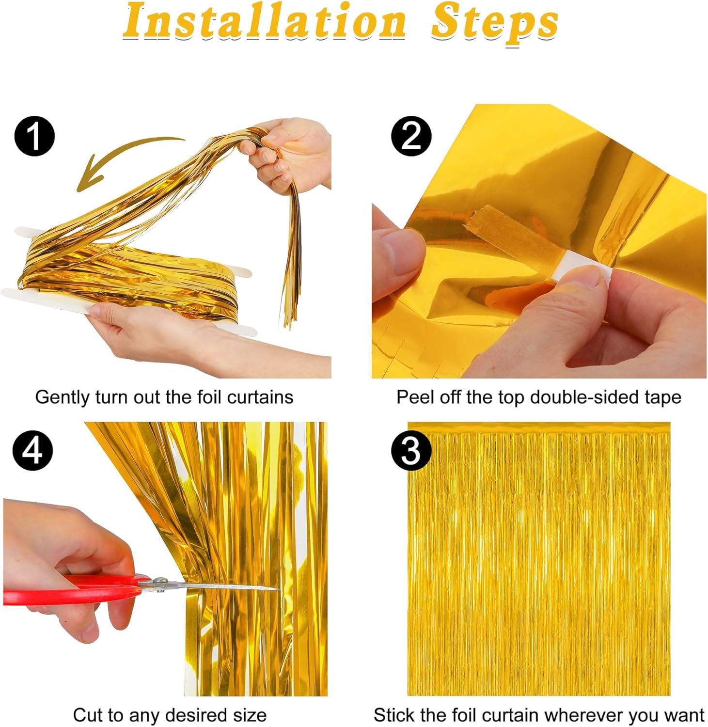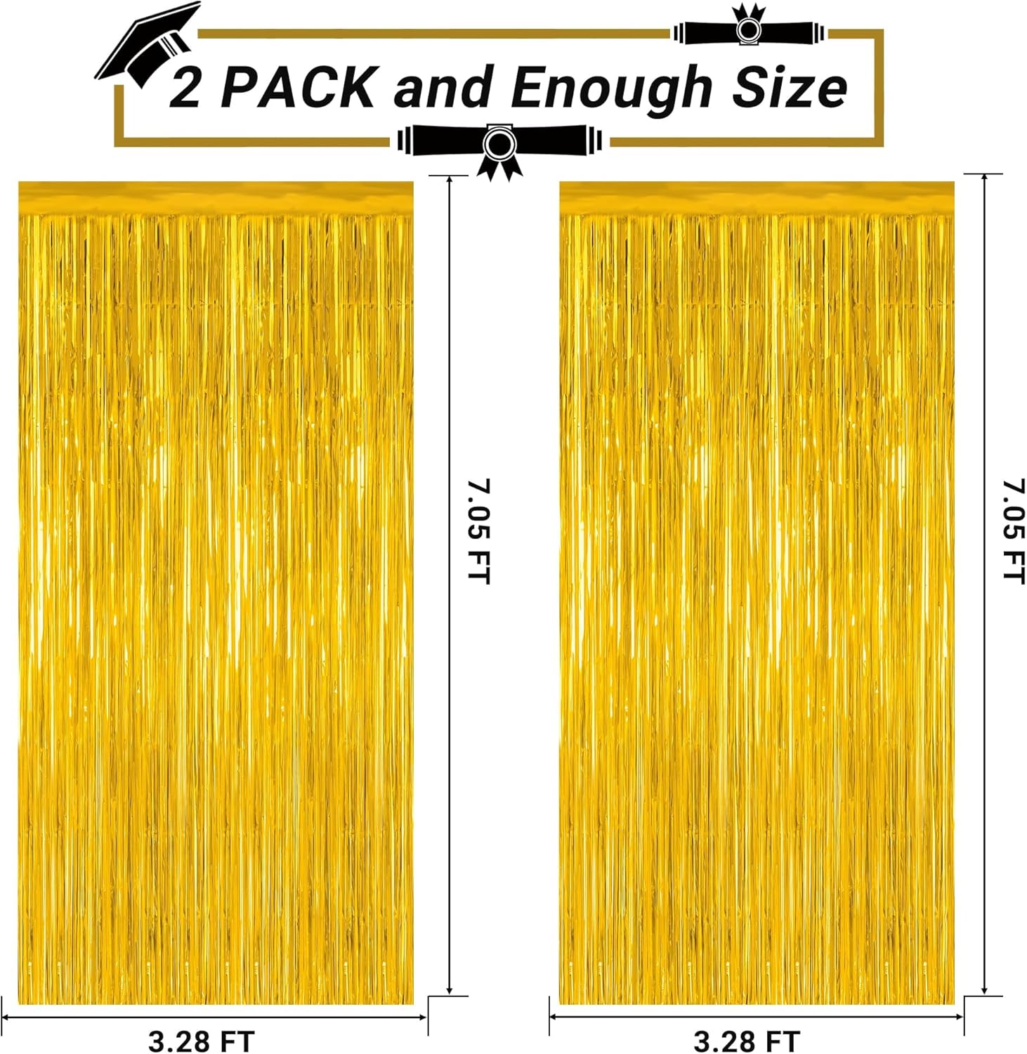 • Package Includes: This set contains 2 pack gold foil curtains, each measuring 3.28 FT x 7.05 FT, oversized design allows free cutting according to your needs.