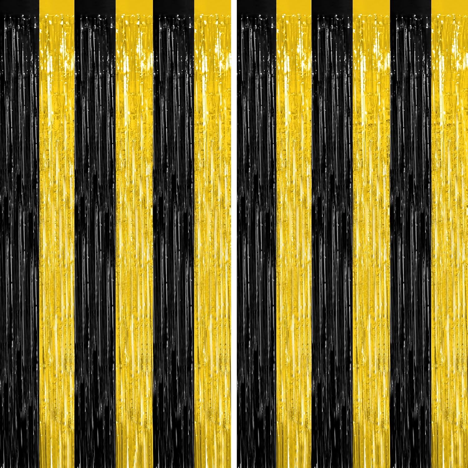 • Package Includes: You will receive 2 pcs black and gold backdrop, each fringe curtain is 3.28 ft x 7.05 ft, it is long enough to be cut to your desired size, suitable for doors, windows, tables and many other places.