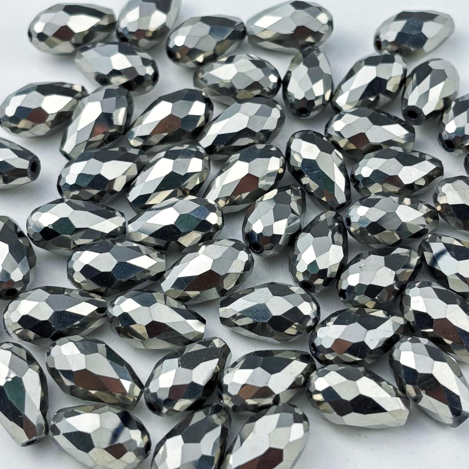50pcs 10x15mm Teardrop Crystal Glass Beads for Jewelry Making, Faceted Vertical Hole Teardrop Glass Spacer Beads for Wind Chimes Bracelet Earring Necklace DIY Craft(Silver)