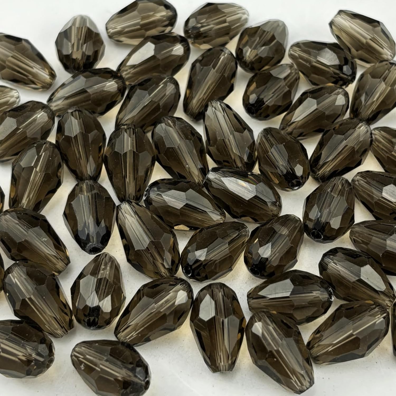 130pcs 6x8mm Teardrop Crystal Glass Beads for Jewelry Making, Faceted Vertical Hole Teardrop Glass Spacer Beads for Wind Chimes Bracelet Earring Necklace DIY Craft(Gray)