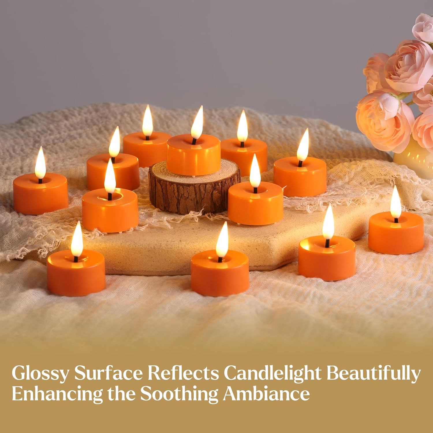 Eywamage Orange LED Tealights with Remote Batteries, Flickering Fall Halloween Flameless Tea Lights Votive Candles Set of 12