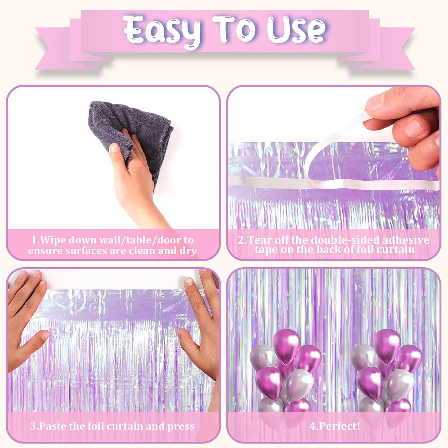 • Dynamic Color-Shifting Effect: Transparent iridescent foil reflects purple, blue, and gold under light, ideal for creating mermaid themes,bachelorette themes and birthday photo booth backdrops without expensive lighting