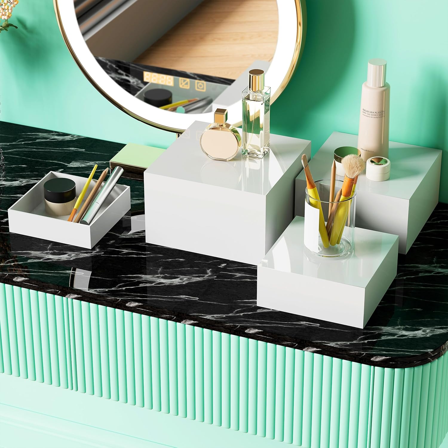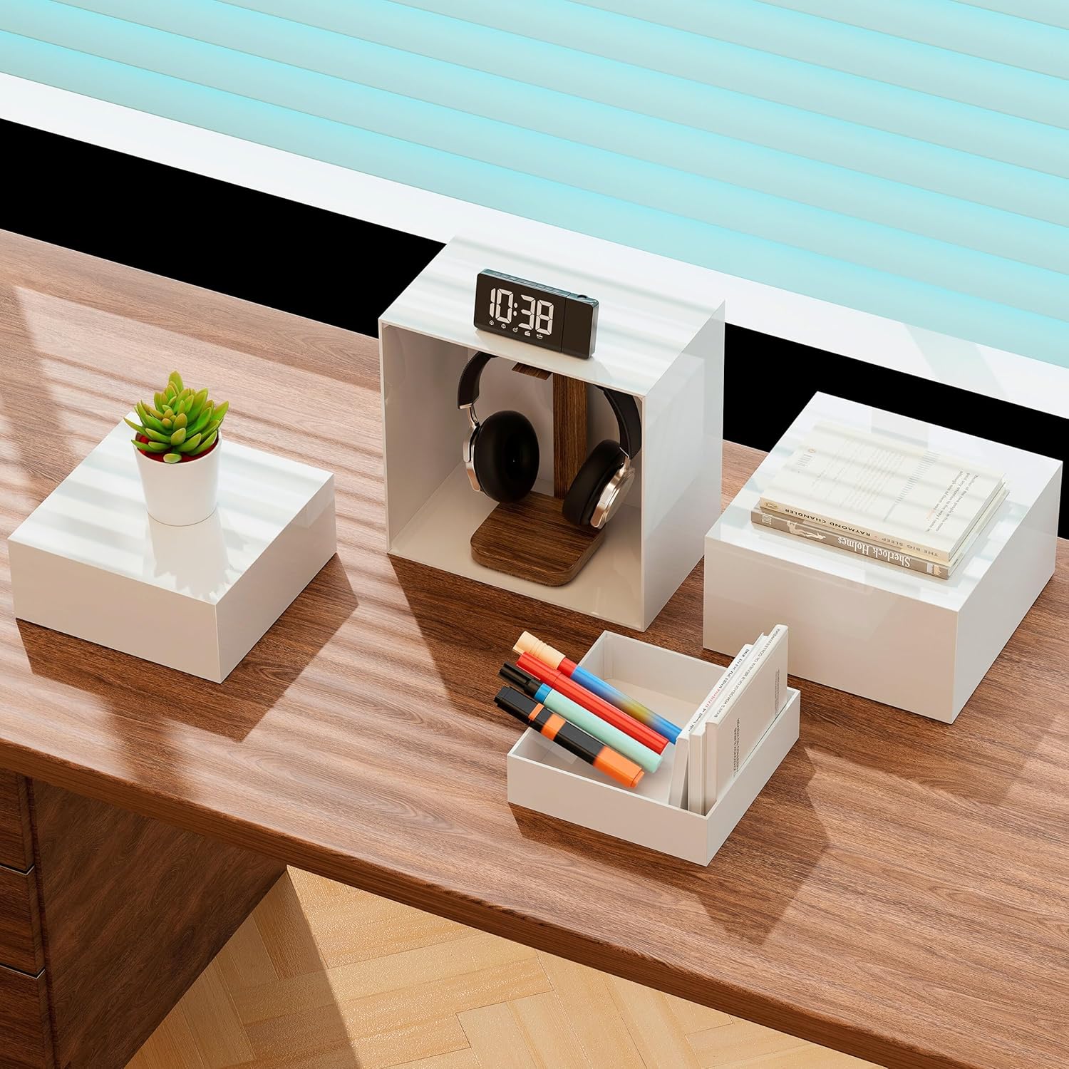 • Multi-Purpose – These white acrylic risers can be used as stands for food platters, jewelry, crafts, or retail displays. With a simple flip, they transform into storage boxes, perfect for holding small household items such as keys, remotes, books, stationery, makeup products, sewing supplies, phones & chargers, small tools, craft supplies, jewelry, and more. Ideal for use in the living room, kitchen, bathroom, bedroom, mudroom, and beyond.