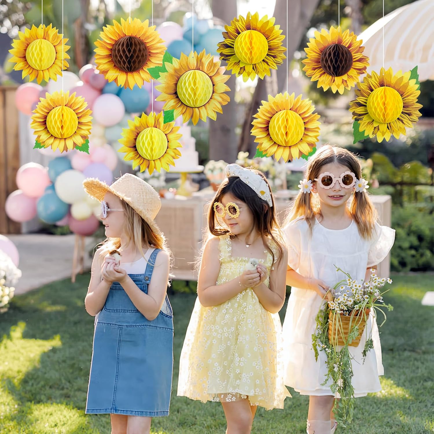 • Charming Sunflower Design: This set includes 9 vibrant, (10inch 5pcs,8inch 4pcs ) honeycomb sunflower decorations, perfect for adding a bright and cheerful touch to your party, whether it’s a birthday, baby shower, Graduation or a spring summer time gathering.