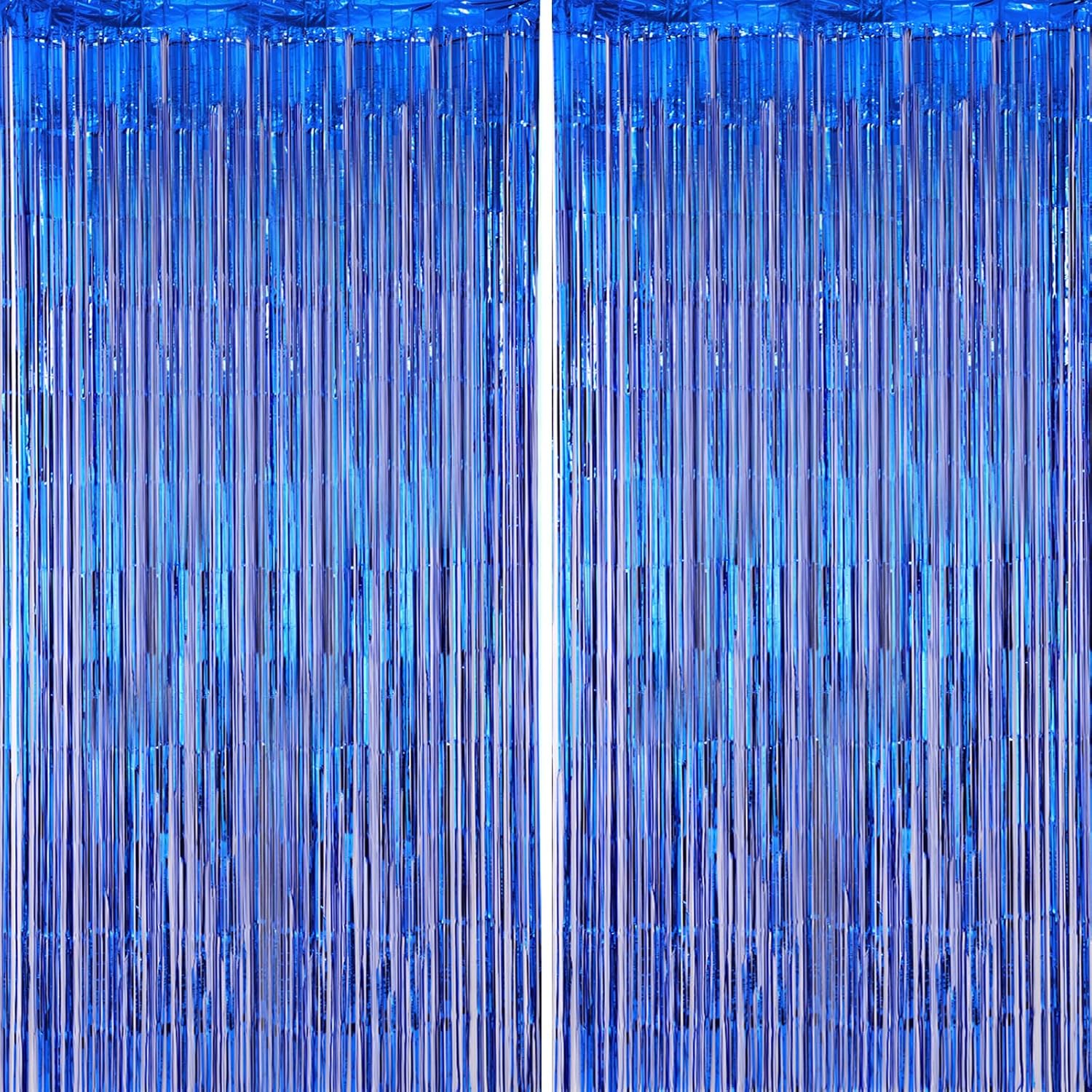 2 Pack Blue Foil Fringe Backdrop Curtains, Tinsel Streamers Party Decorations, Fringe Backdrop for Graduation, Disco Party