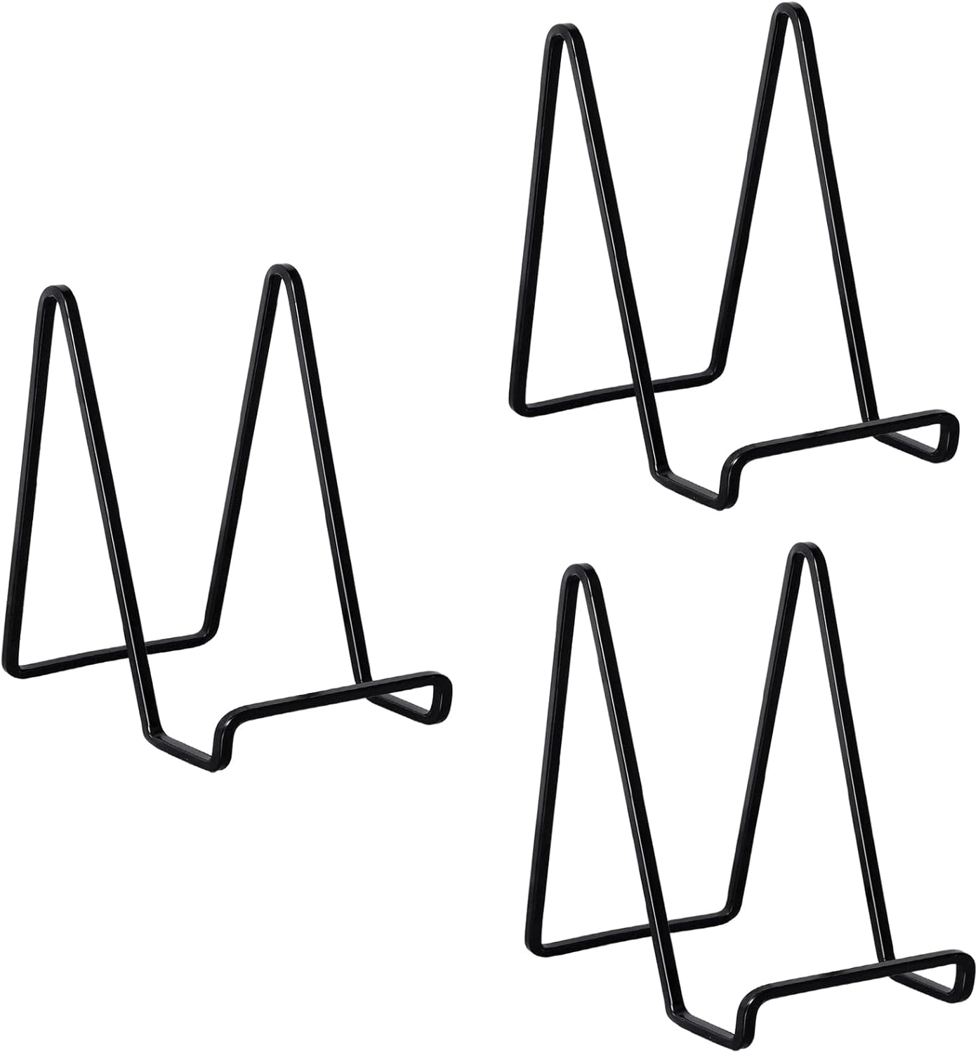 3 Pack 4 inch Metal Plate Stands for Display, Plate Holder Pictures Frame Easel Display Stand, Tabletop Picture Stand, Iron Easels for Display Photo Frames, Plates, Vinyl Record,Book, Plaque, Sign
