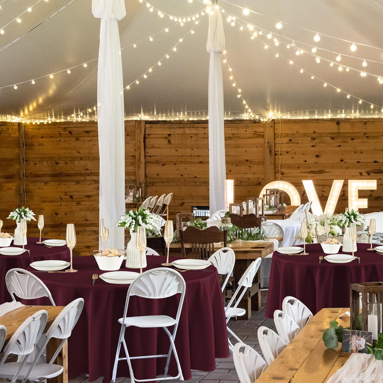 Fitable 8 Pack Round Tablecloths: Stain Resistant Wrinkle Free Circle Table Clothes, Washable Reusable Polyester Table Covers for Wedding Party Birthday Banquet Reception(Burgundy, 84 Inch)