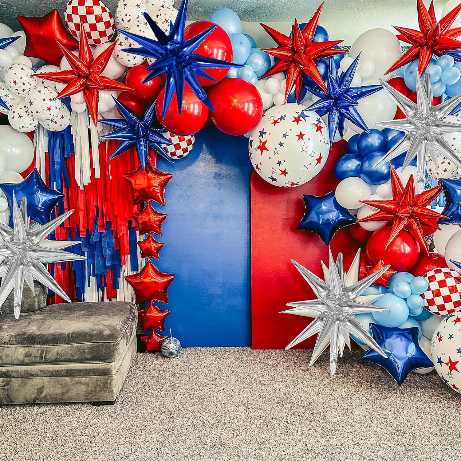 • Widely Application:Our blue red silver star balloon set are great for birthday,anniversaries,graduation,baby shower,opening events,engagement,disco party and all kinds of theme party,can be decorated indoors or outdoors,great party decorations choice!