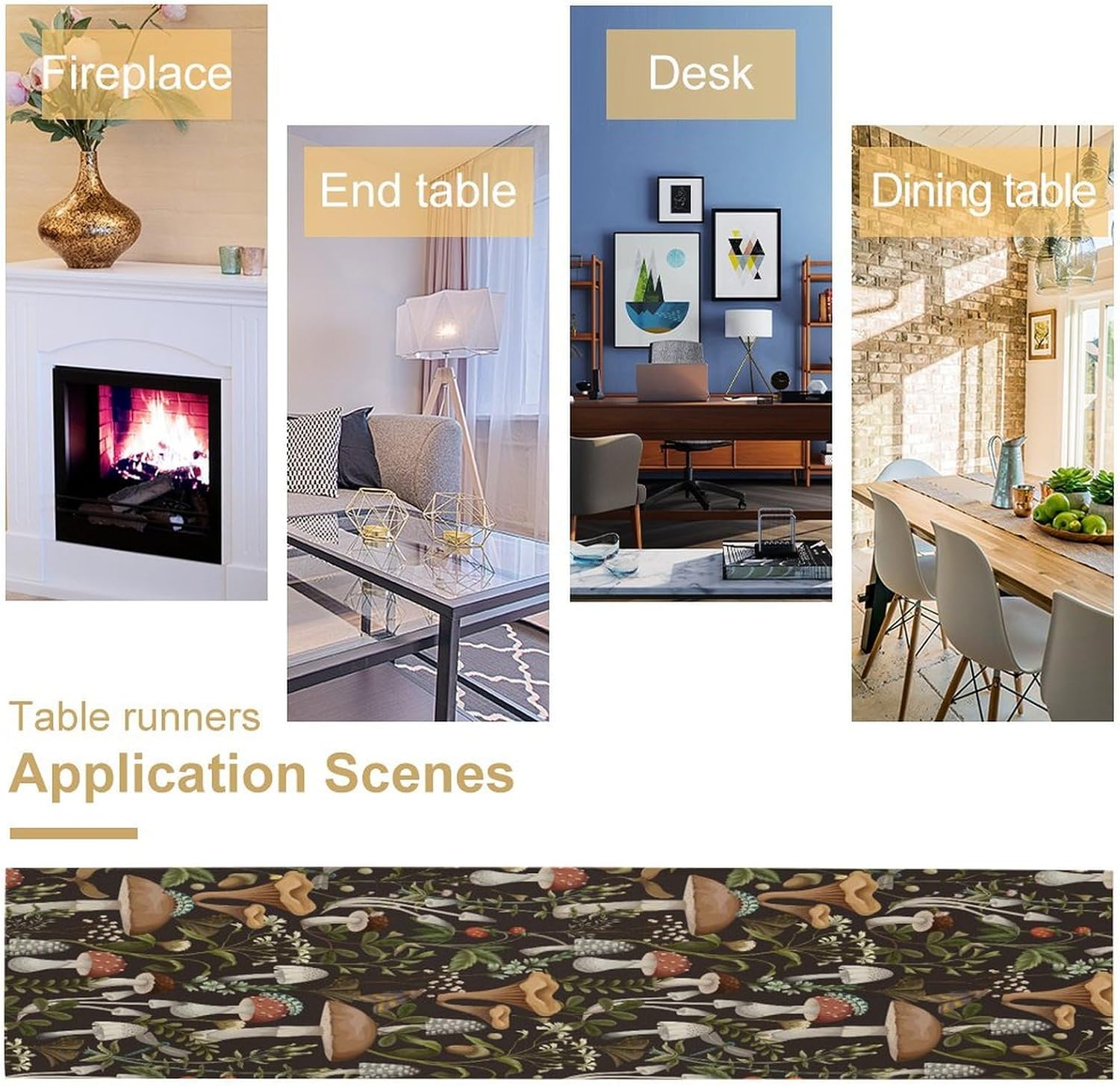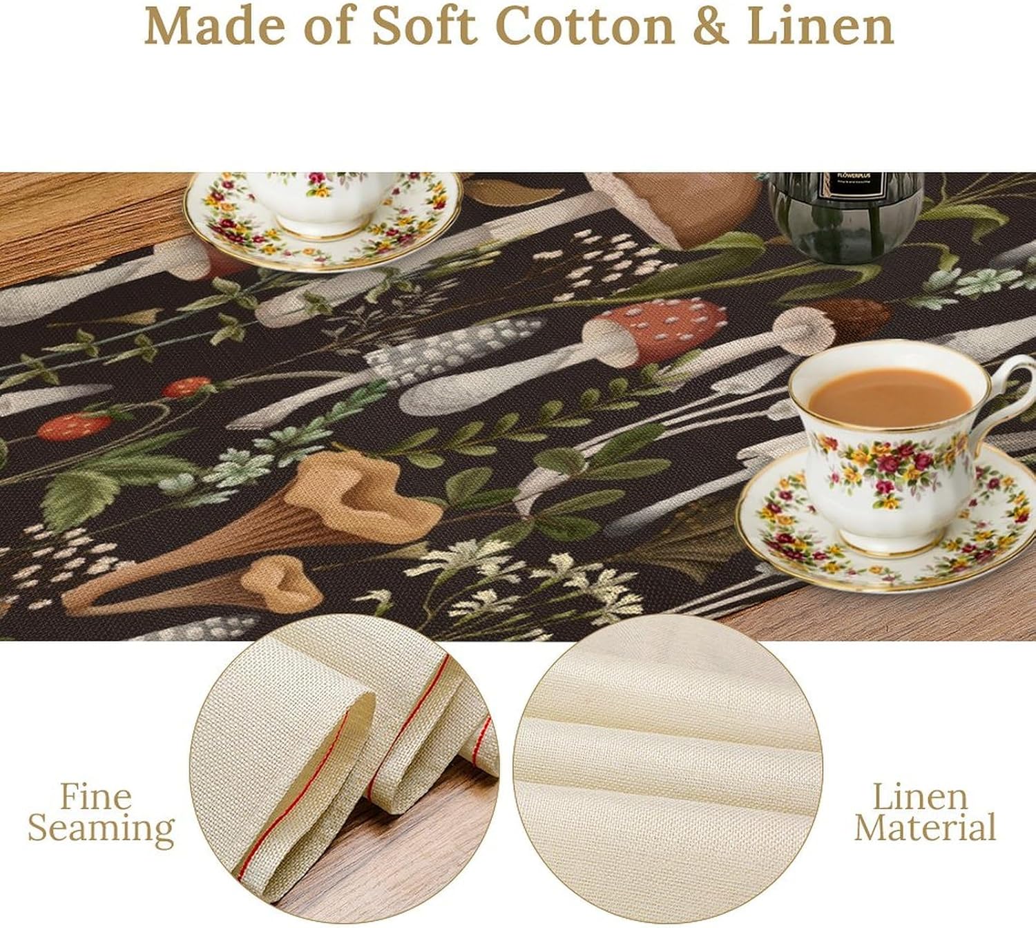 Mushroom Table Runner,Retro Forest Wildflower Botanical Plants Flower Art Pattern Print Burlap Hotel Indoors Outdoor Dining Room Kitchen Holiday Party, 13x90in