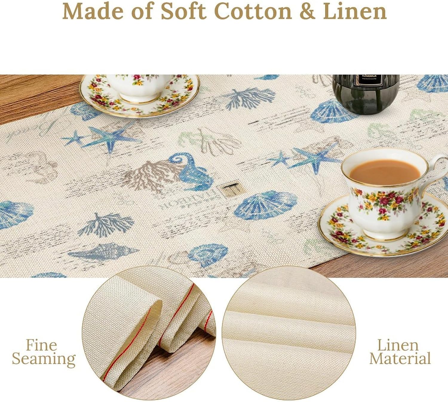Starfish Table Runner,Vintage Nautical Seashell Tropical Beach Theme Coastal Ocean Sea Burlap for Hotel Indoors Outdoor Dining Room Kitchen Tablecloth, 13x60in