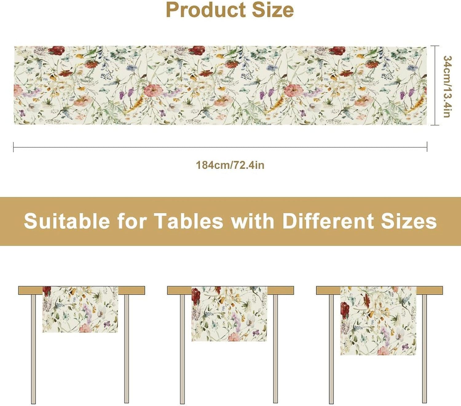 • SIZE: Table runner are available in 13x36 Inch to suit different sizes and shapes of table tops.
