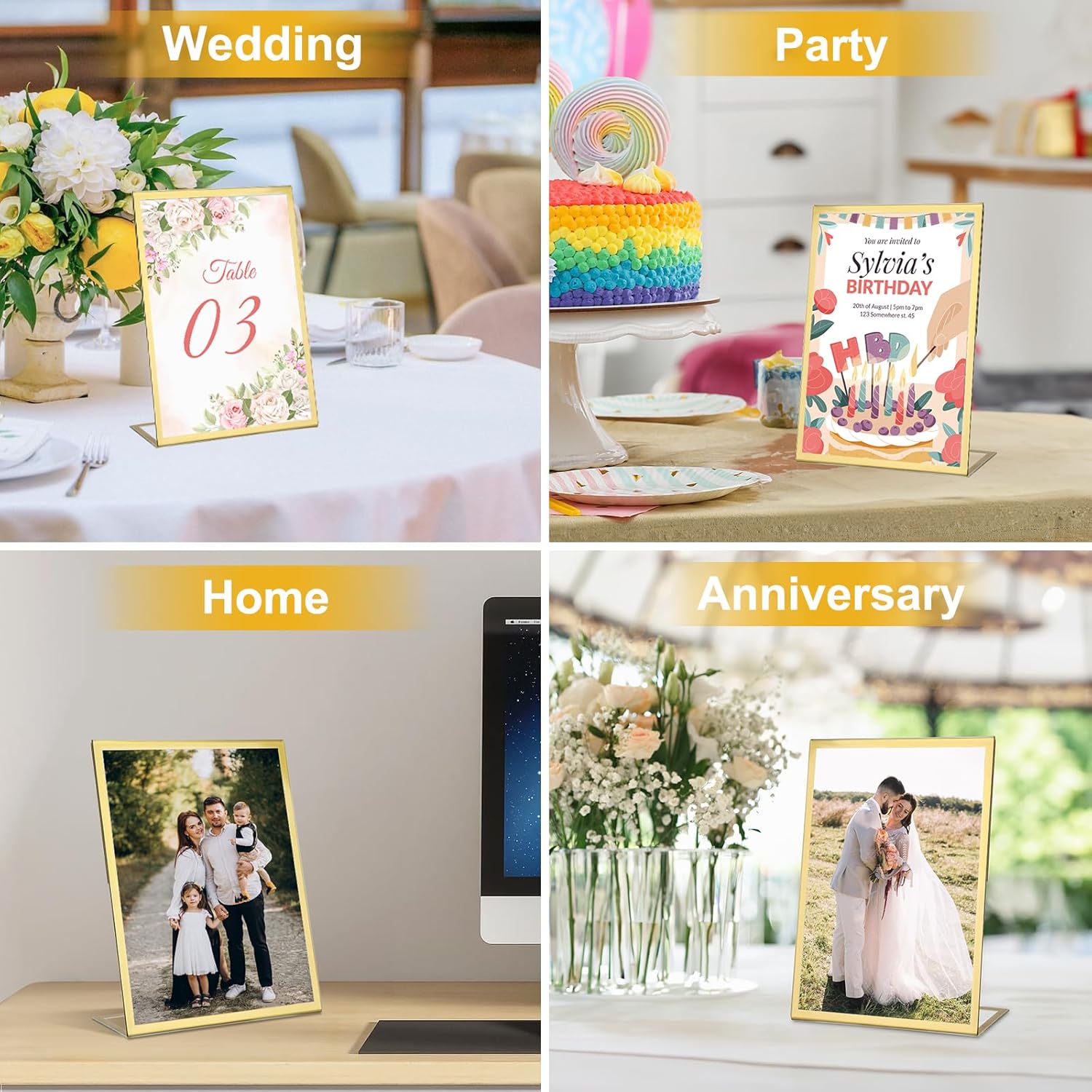 • Wide Range of Application: EHWINE Premium acrylic gold photo Frame is suitable for displaying photos, pictures, brochures, menus, artwork, advertisements, etc. on wedding tables, offices, stores, schools and anywhere else
