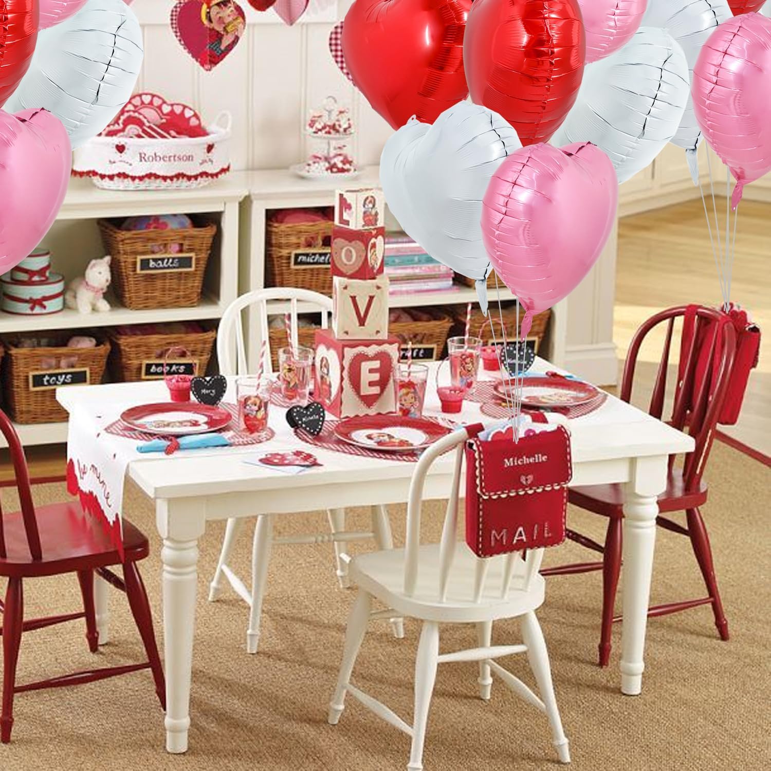 TONIFUL 30Pcs 18 Inch Heart Balloons Red White Pink Valentine’s Day Heart Shape Foil Mylar Balloons Decoration for Romantic Valentine's Day Wedding Bridal Shower Anniversary Engagement Party Supplies