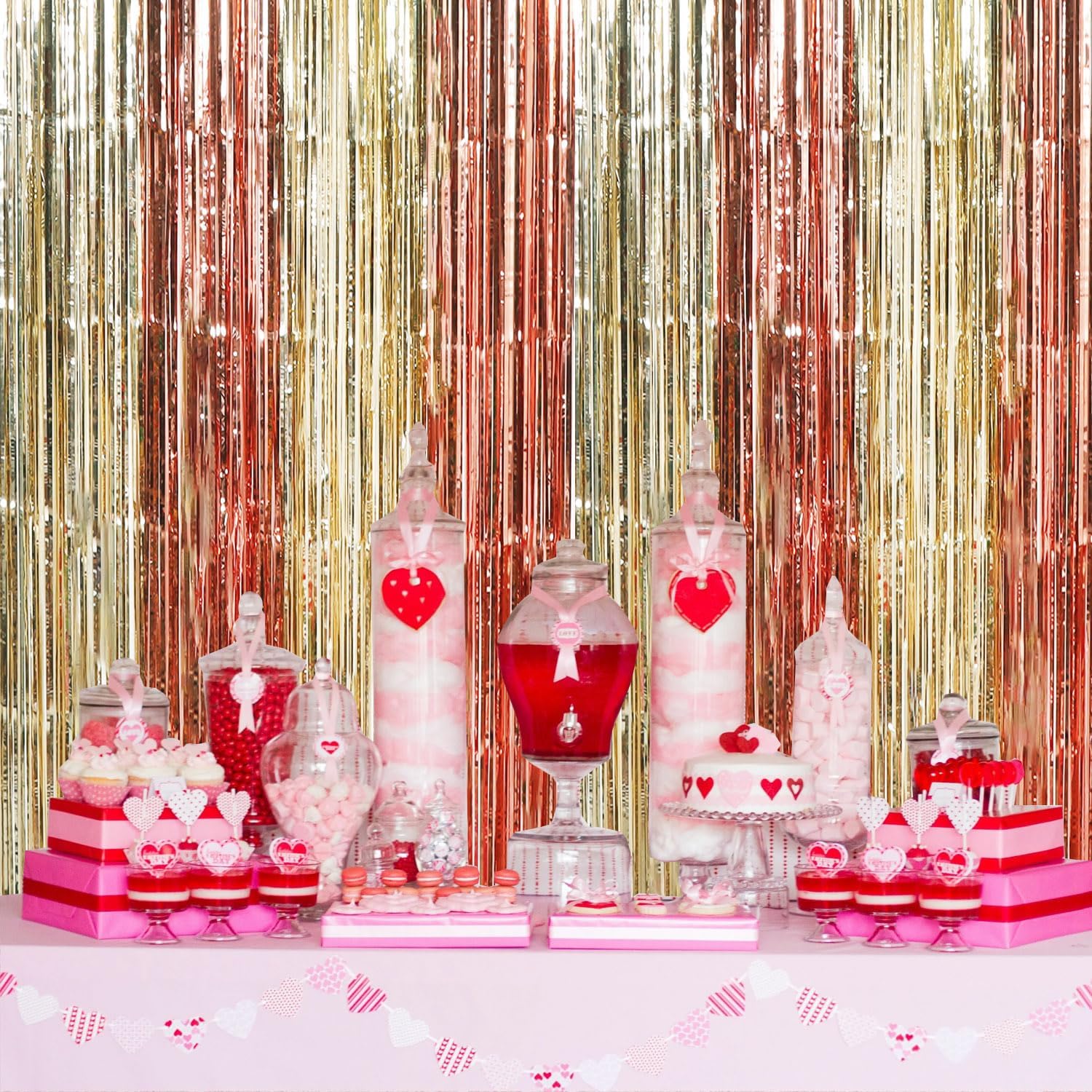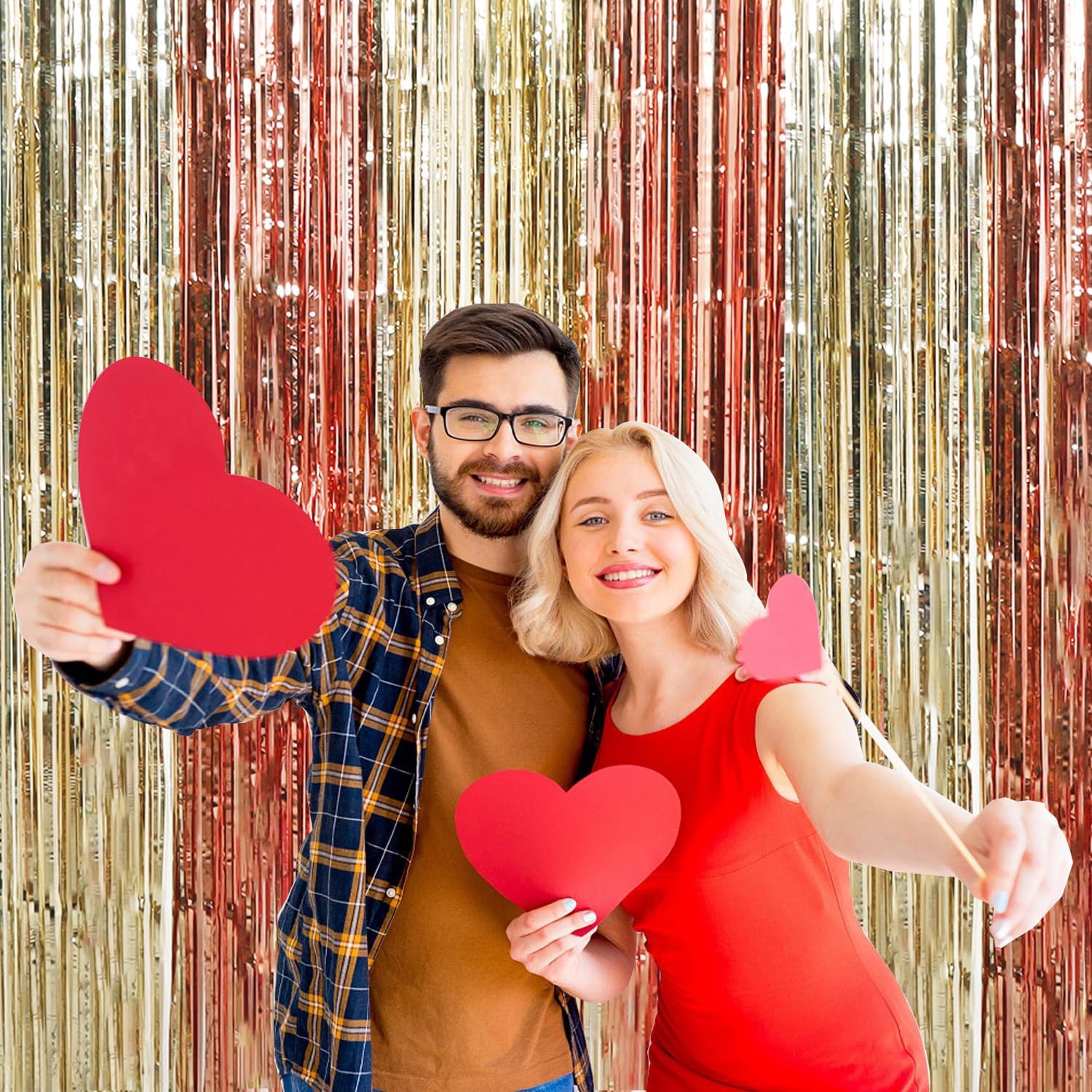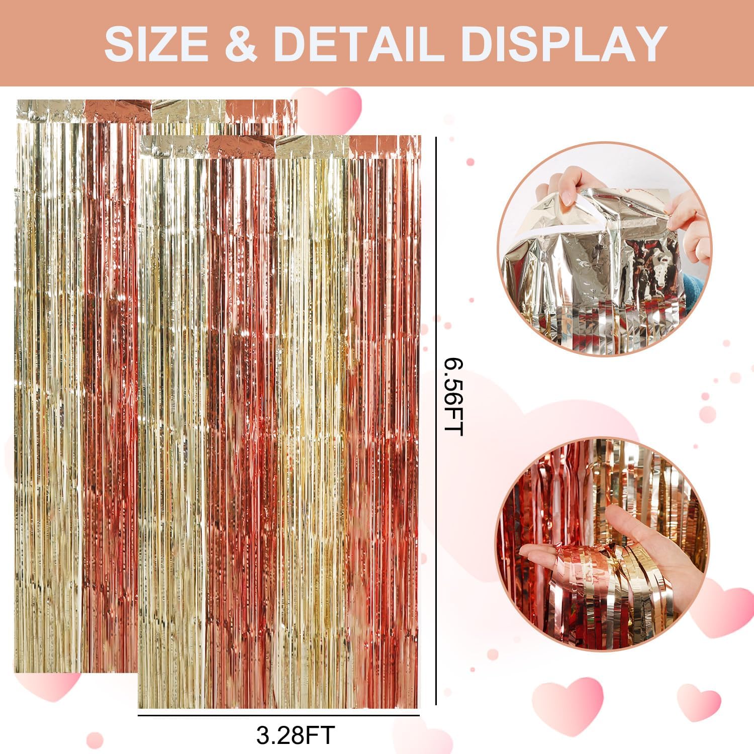 • PACKAGE CONTENTS: 2 x foil curtains: Big size (wide x drop):3.3 x 6.6 feet,6.6ft x 6.6ft in total. Brightly colored quality party decoration photography curtains will surely make you rValentine's Day party more fun.