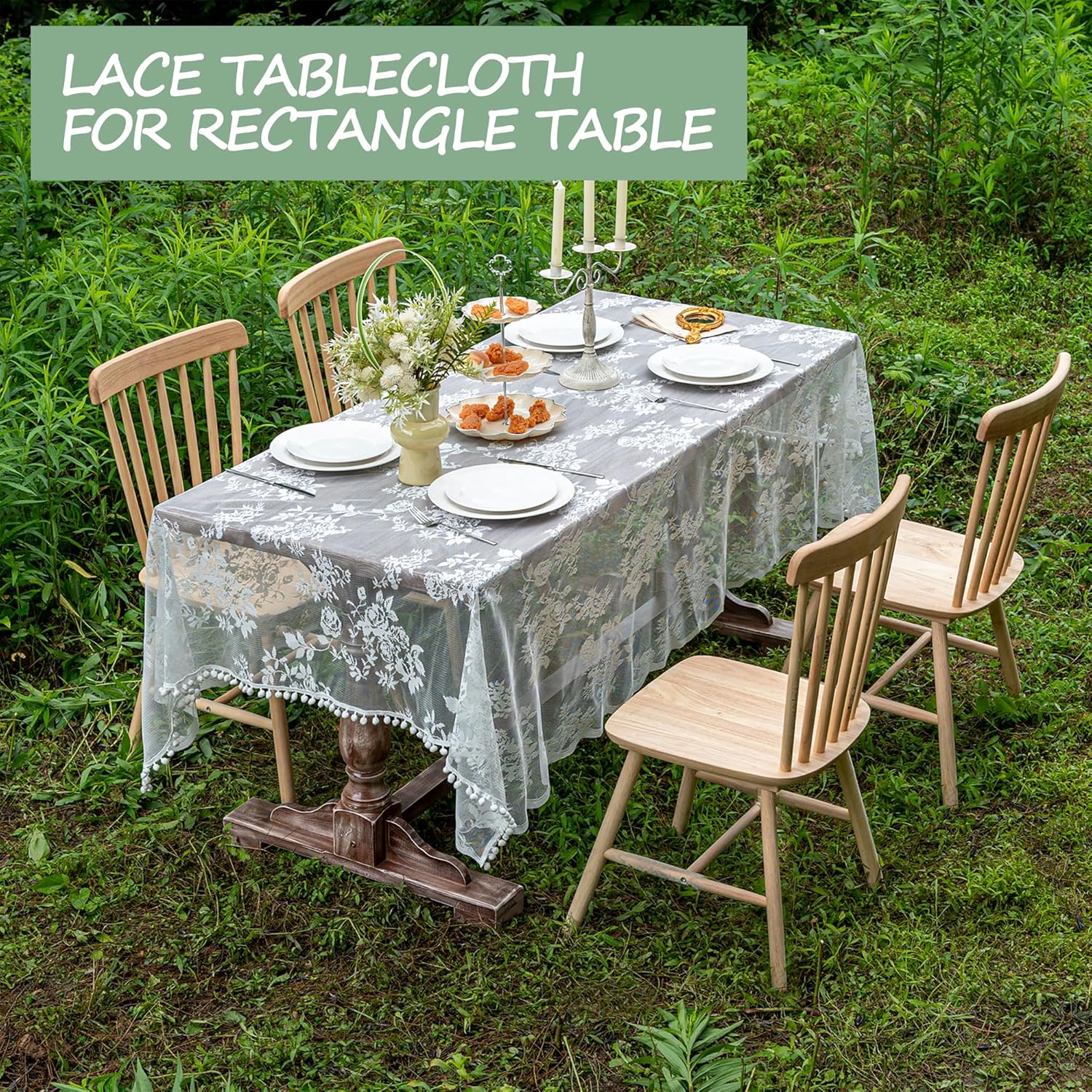 • ELEGANT DESIGN: lace tablecloth intricately designed floral openwork,these tablecloths will instantly add elegance to any dining room table