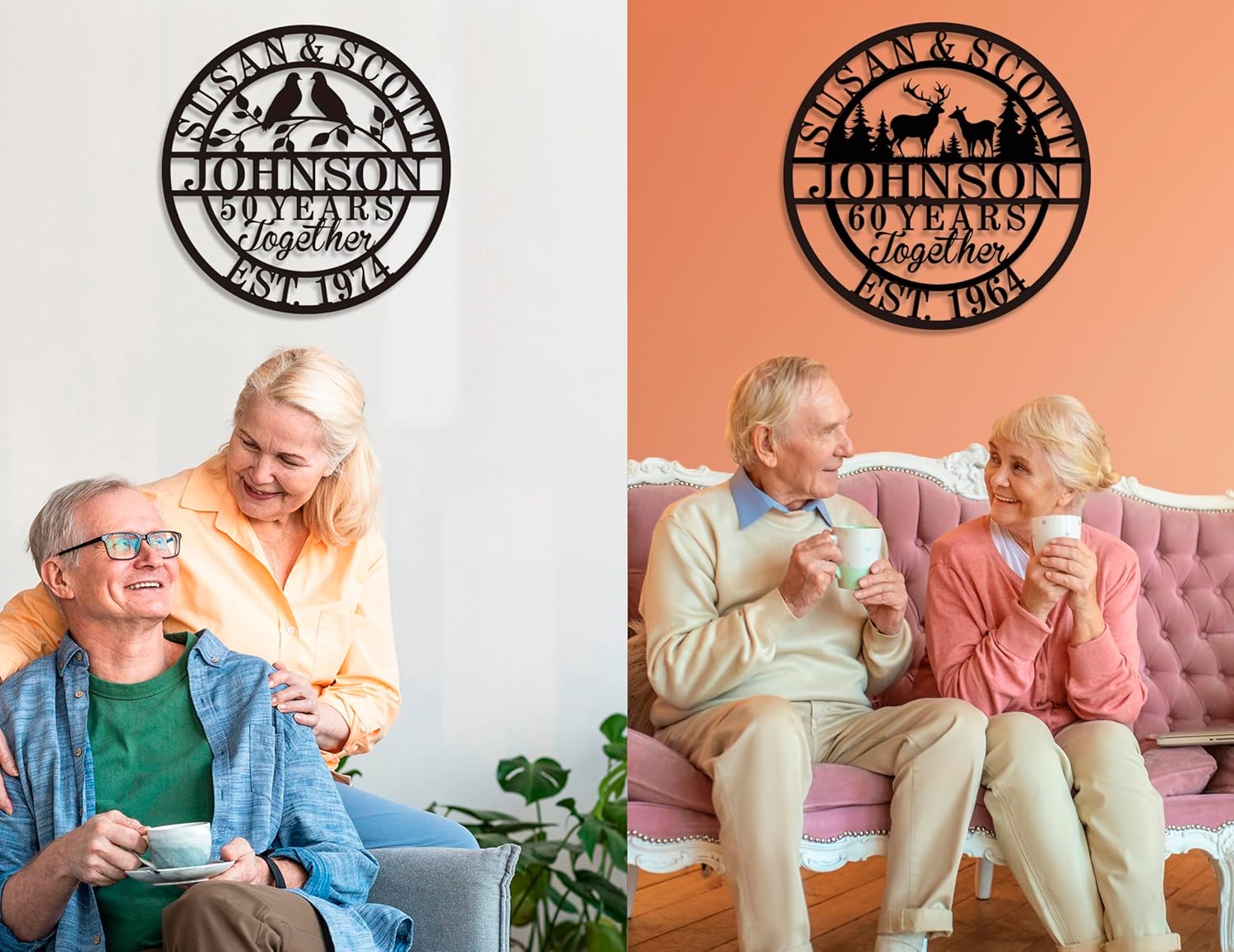 Custom 50th/40th/60th/70th/30th/1-99 Years Wedding Anniversary Sign Gifts for Couples Parents, Custom Metal Monogram Sign Personalized Family Name Signs (Flowers)