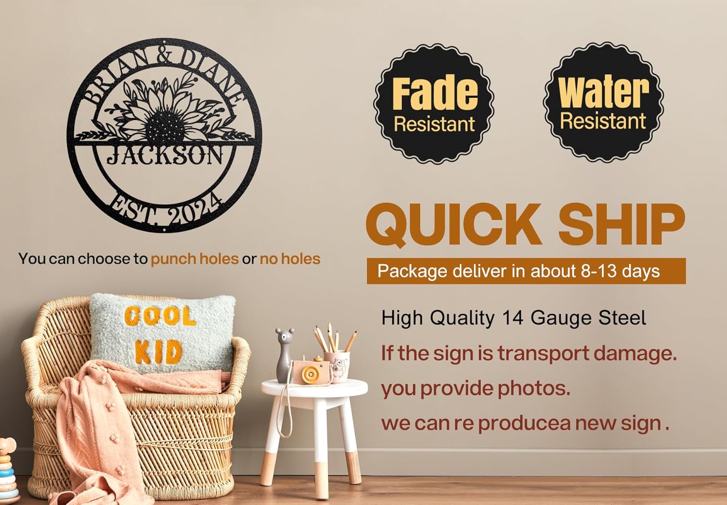 • Metal Sign Customization: Our artisans skillfully personalize each sign with intricate monograms, floral accents, and your preferred color scheme, ensuring a one-of-a-kind piece that perfectly captures your style and personality.