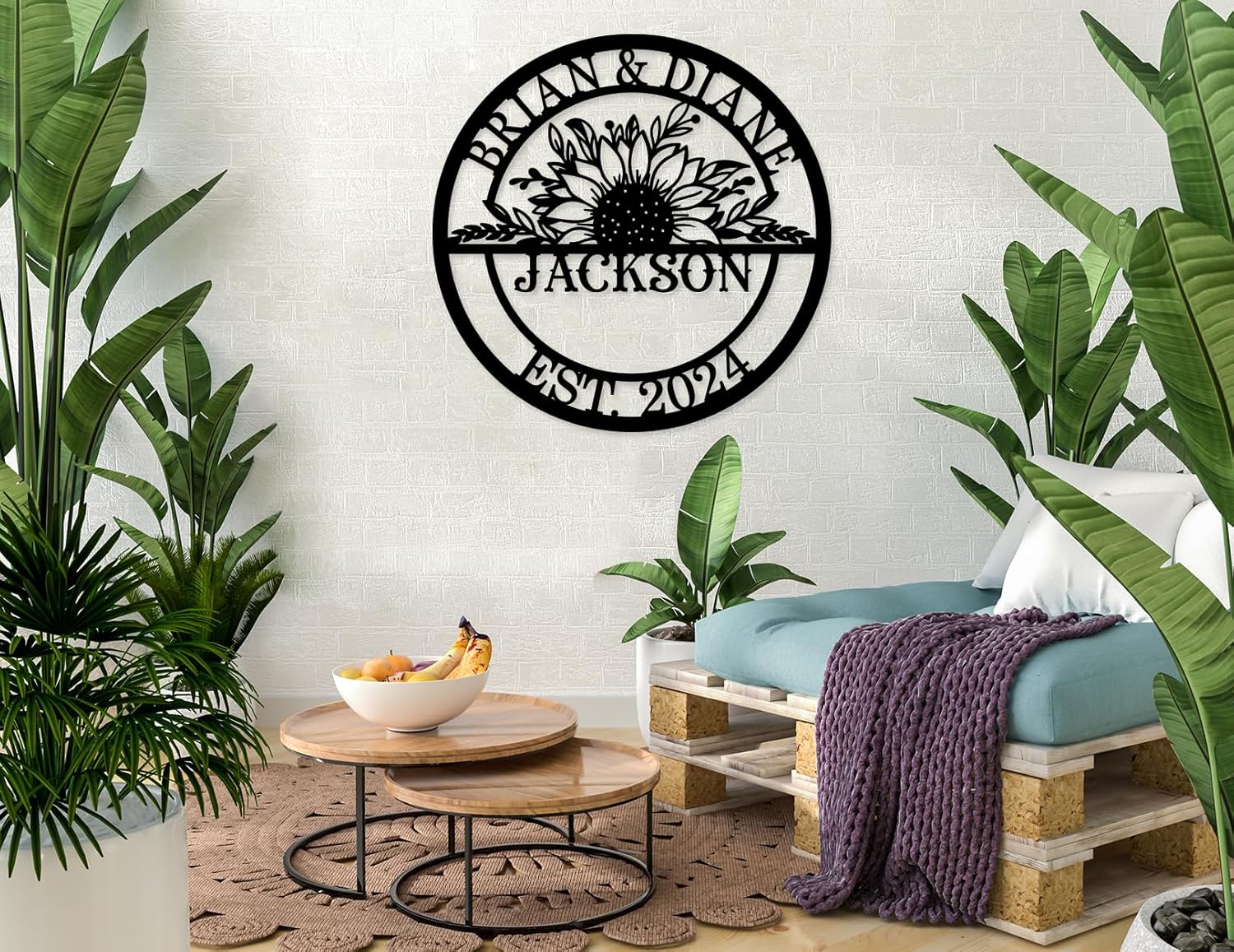 • Family Name Sign: Proudly display your shared identity with a beautifully crafted metal sign featuring your family name, symbolizing unity and strength in your commitment to each other.