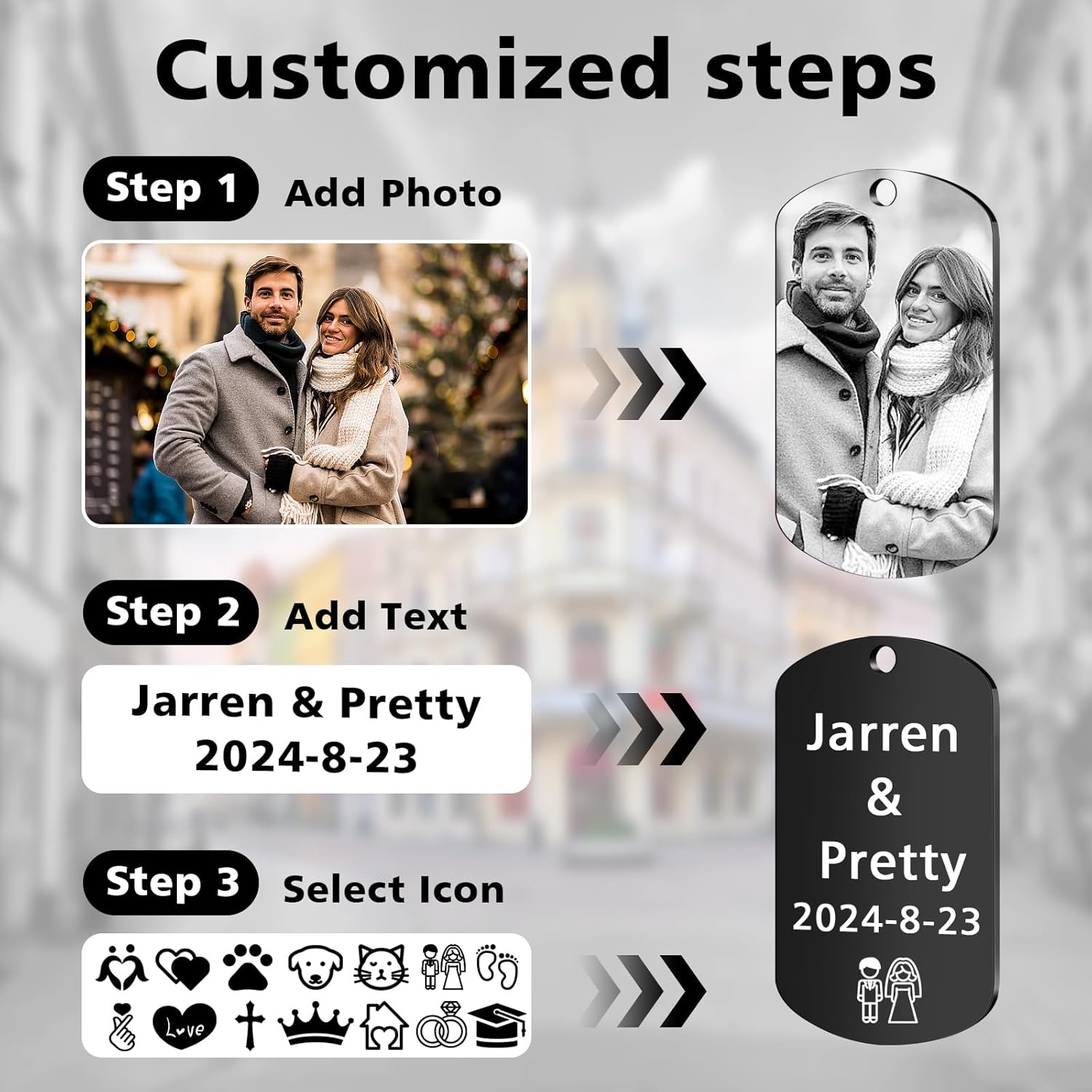Personalized Keychain with Engraved Photo & Text Customized Custom Gift for Boyfriend, Girlfriend Valentine's Day gift