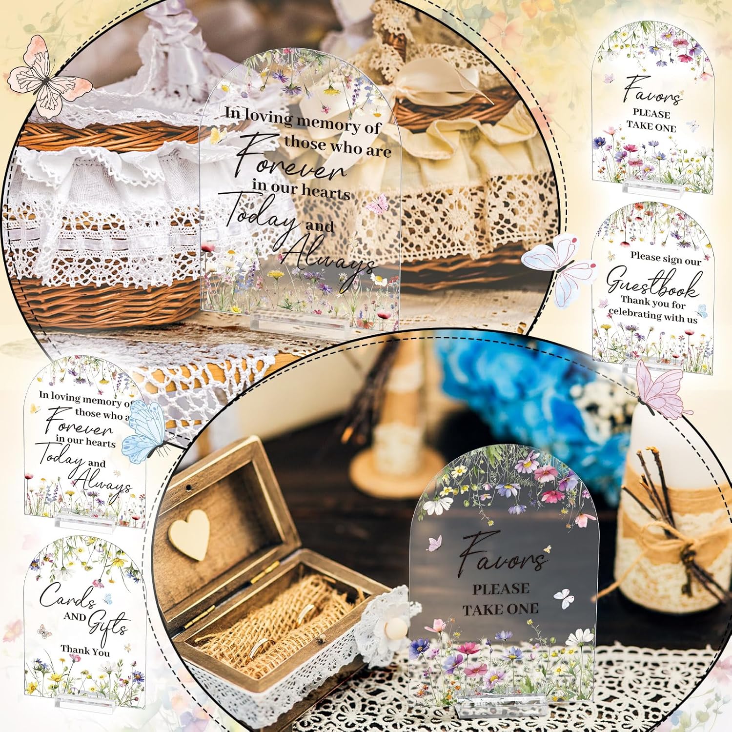 • Charming Floral Design: featuring a trendy arch shape and vibrant wildflower prints, these acrylic wedding signs add an elegant touch to your special day, nice for enhancing table decor and creating a warm atmosphere