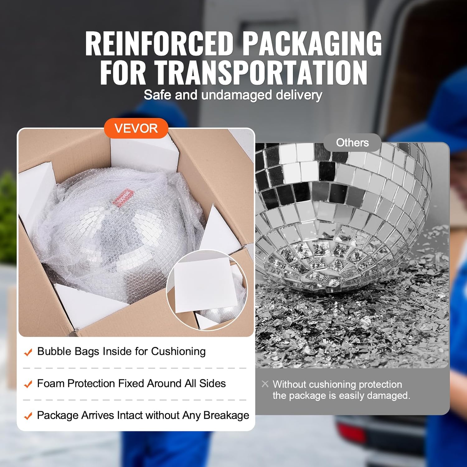 • Safe Shipping: We take extra care when packaging your disco ball deco. It’s wrapped in bubble cushioning, with foam reinforcements in the corners to keep it safe during transit, so it arrives ready to shine!