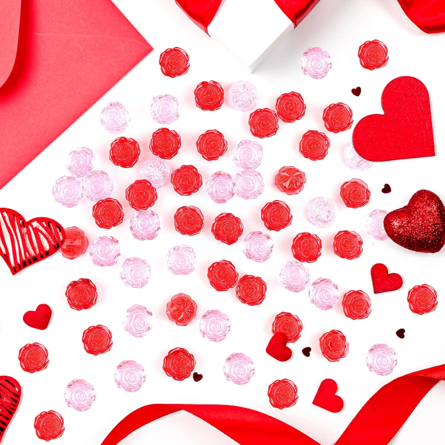 • Valentine's Day Decoration:Lovely red pink rose gems are suitable for Valentine's Day desktop decoration,sprinkle some on the table or around the candles.Adding radiance and charm to your Valentine's Day and party tables