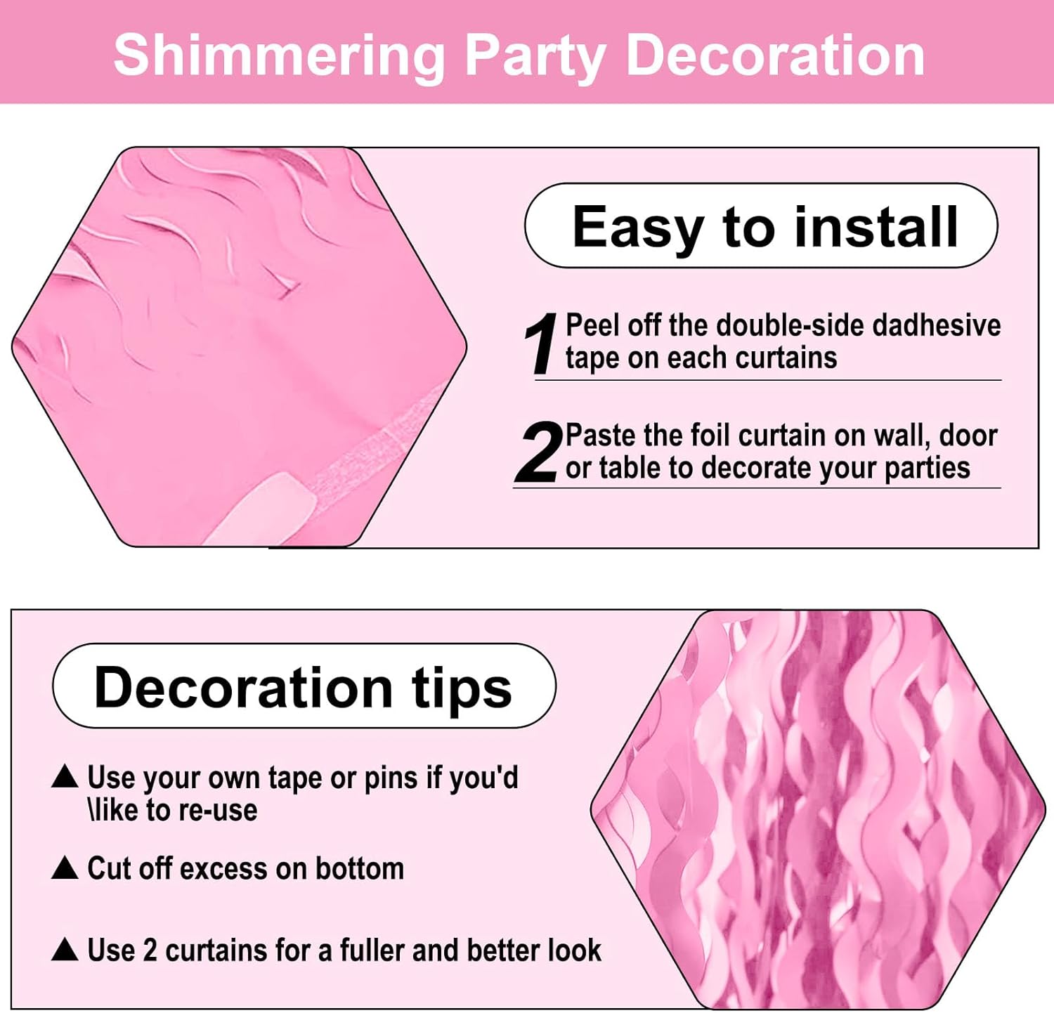 4 Pack Macaron Pink Wave Foil Fringe Curtain Backdrop, 3.28Ft x 8.2Ft Metallic Tinsel Foil Fringe Streamer Curtains for Photo Booth, Mother's Day, Easter, Birthday, Wedding Party Decoration