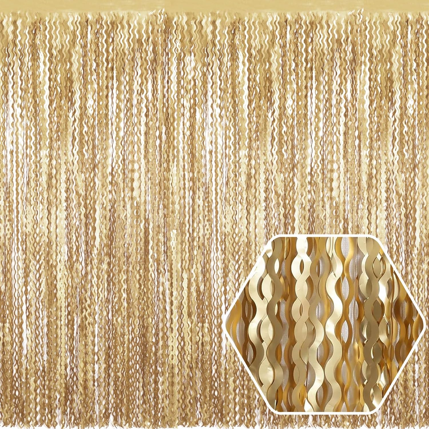 4 Pack Champagne Gold Wave Foil Fringe Curtain Backdrop, 3.28Ft x 8.2Ft Metallic Tinsel Foil Fringe Streamer Curtains for Photo Booth, Mother's Day, Easter, Birthday, Wedding Party Decoration