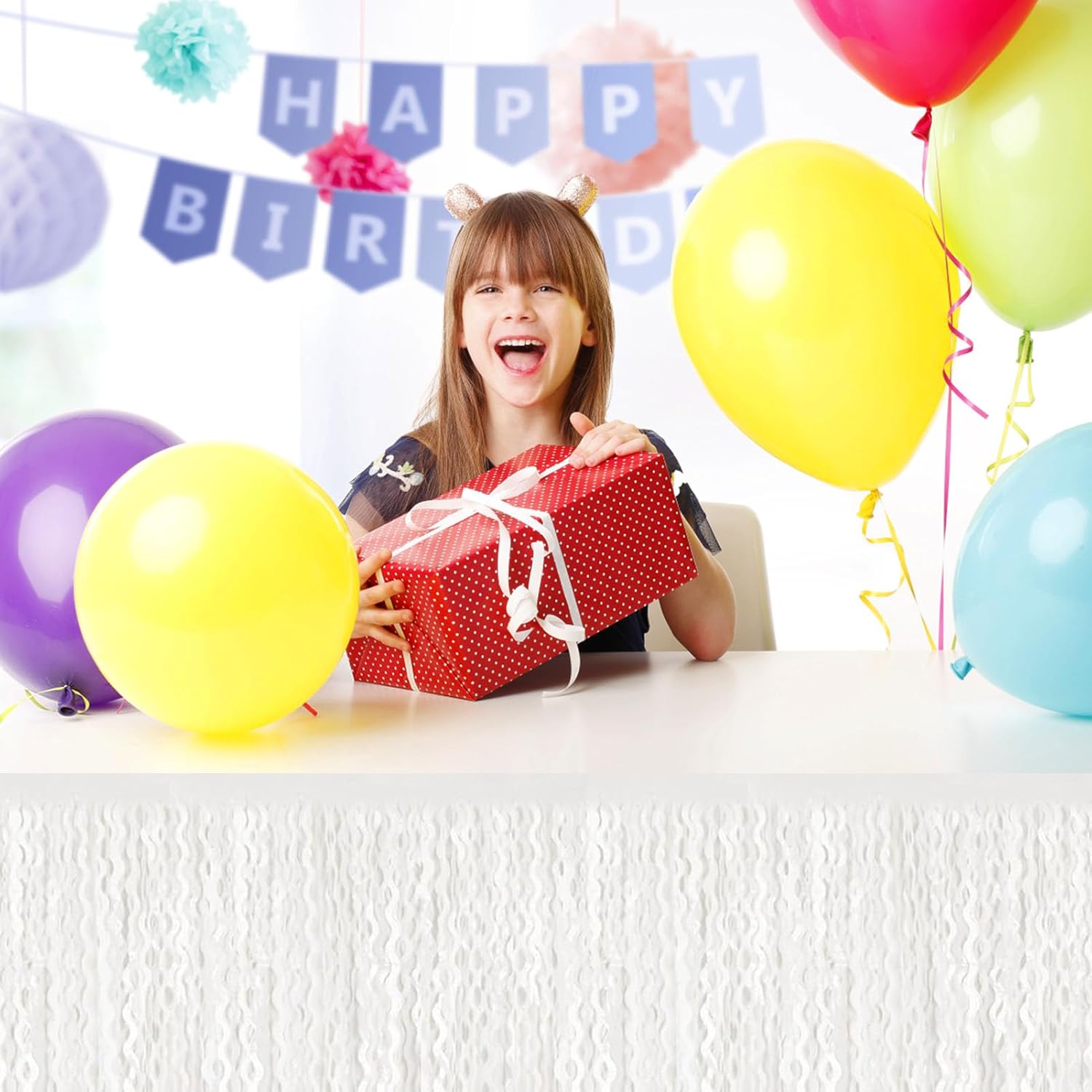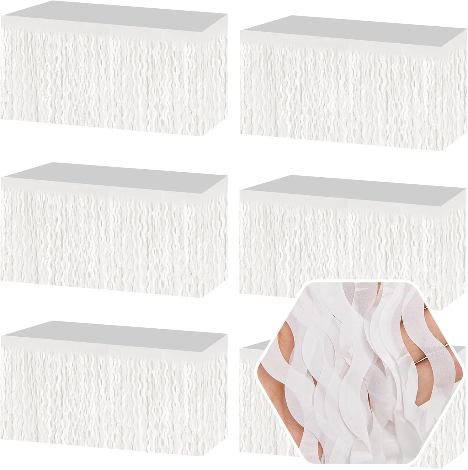 6 Pack 29 x108 Inch Macaron White Wave Foil Fringe Table Skirts Metallic Banner for Tinsel Streamer Garland Backdrop for Parade Floats, Mother's Day, Easter, Wedding, Birthday Party Decoration