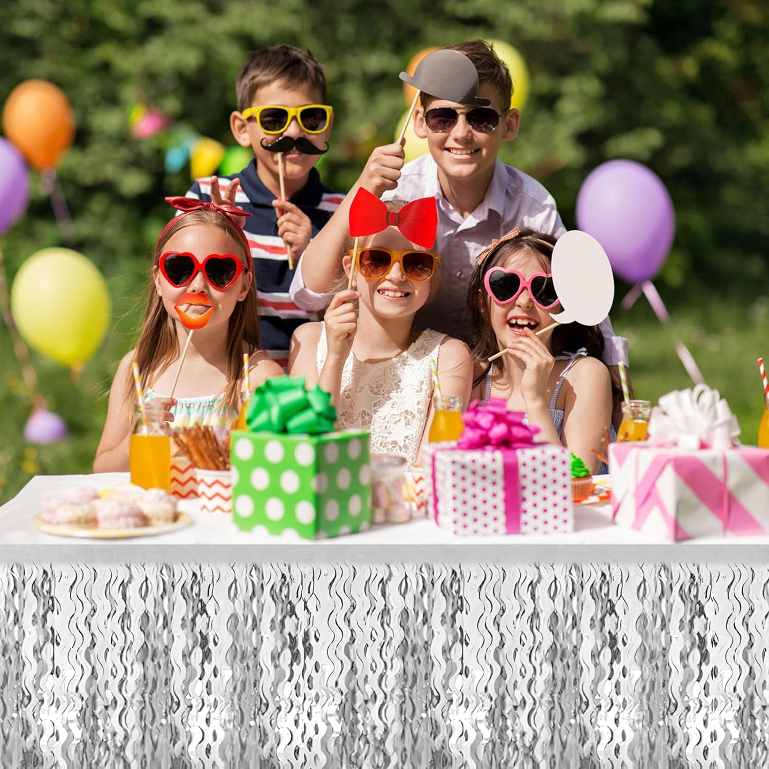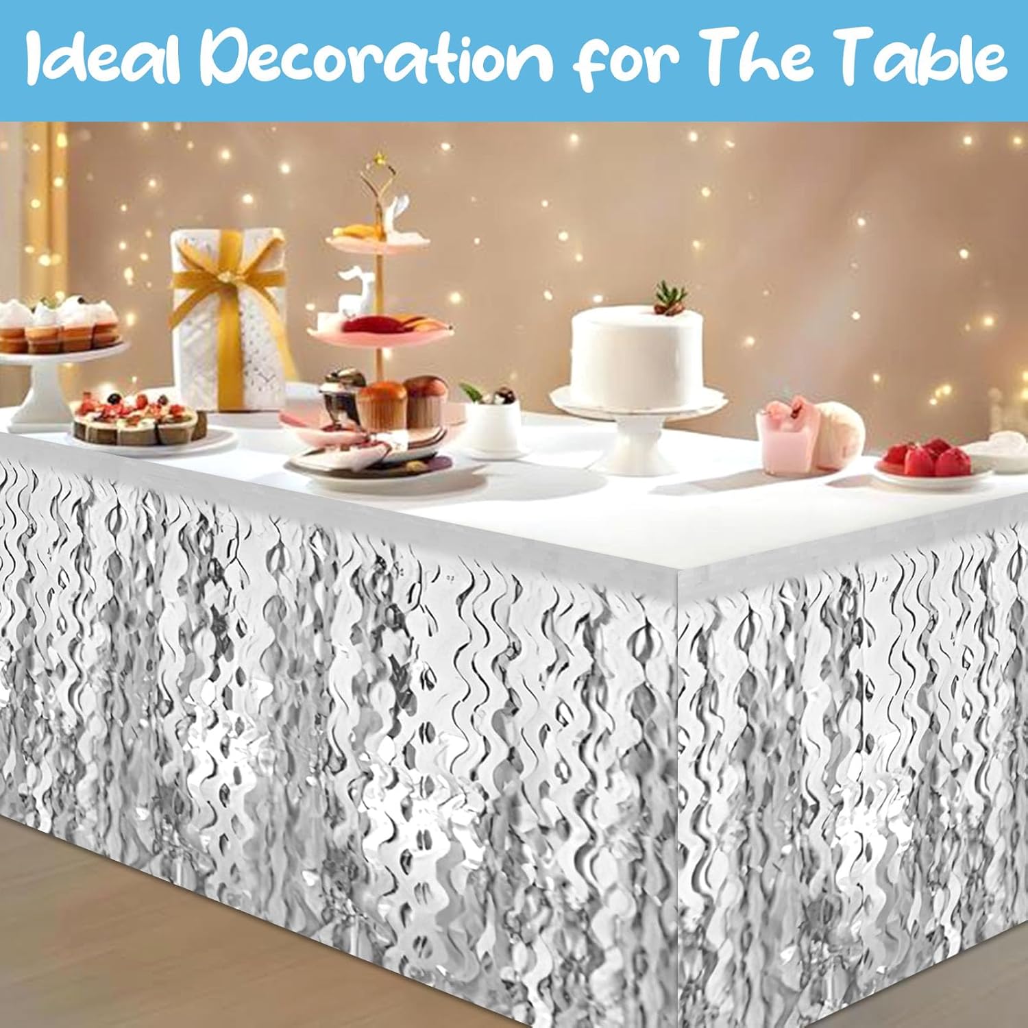 6 Pack 29 x108 Inch Silver Wave Foil Fringe Table Skirts Metallic Banner for Tinsel Streamer Garland Backdrop for Parade Floats, Mother's Day, Easter, Wedding, Birthday Party Decoration