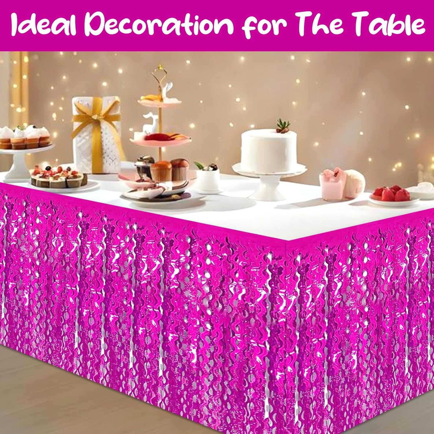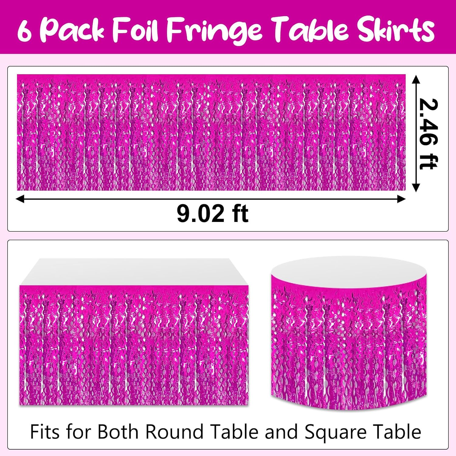 • Specifications and dimensions:6 Packs metallic foil tassel table skirt 29x108 inches, which is enough to decorate your party, provide you with excellent Convenient installation: the table skirt is equipped with self-adhesive tape. Just tear off the tape and paste it. The installation is convenient and quick. It can be pasted on the edge of your round table and square table. It can be easily cut into any siz.