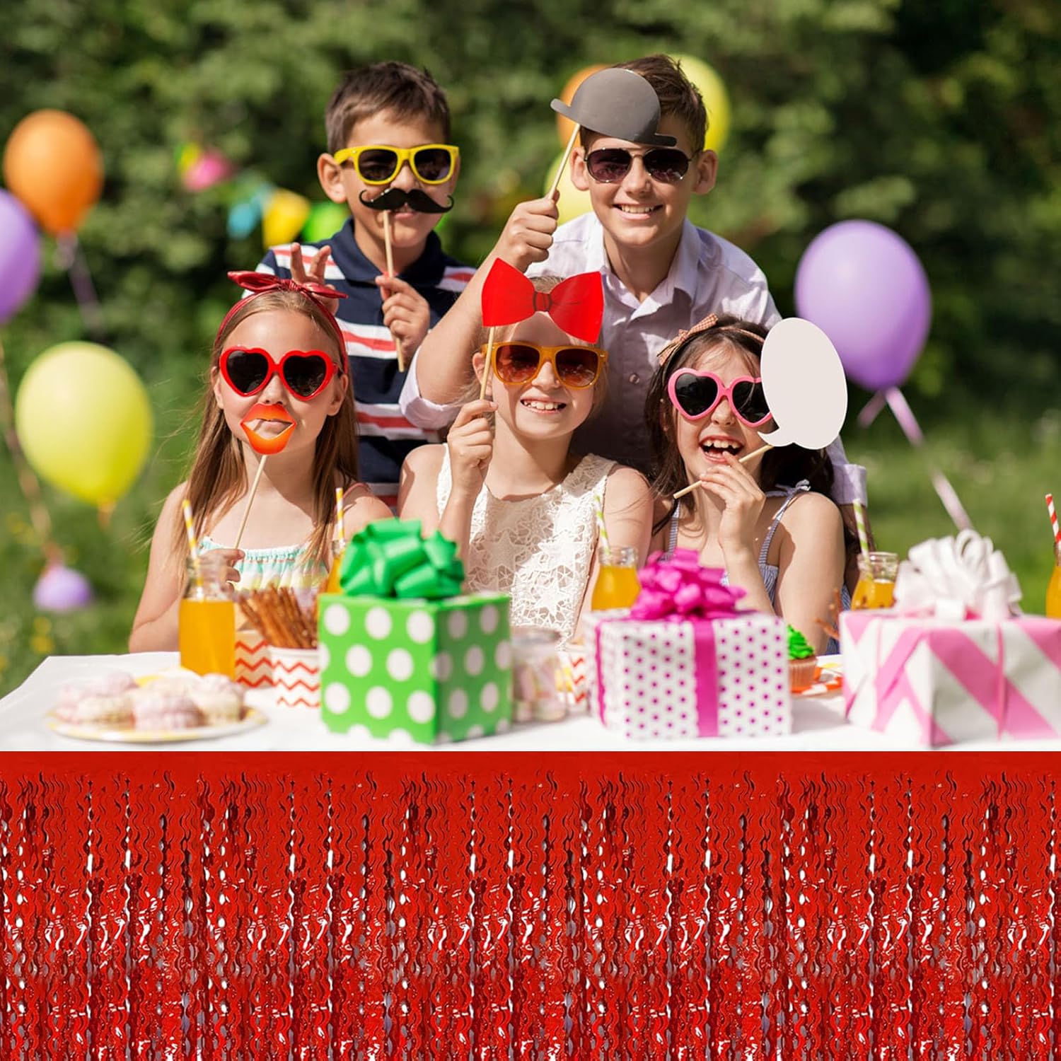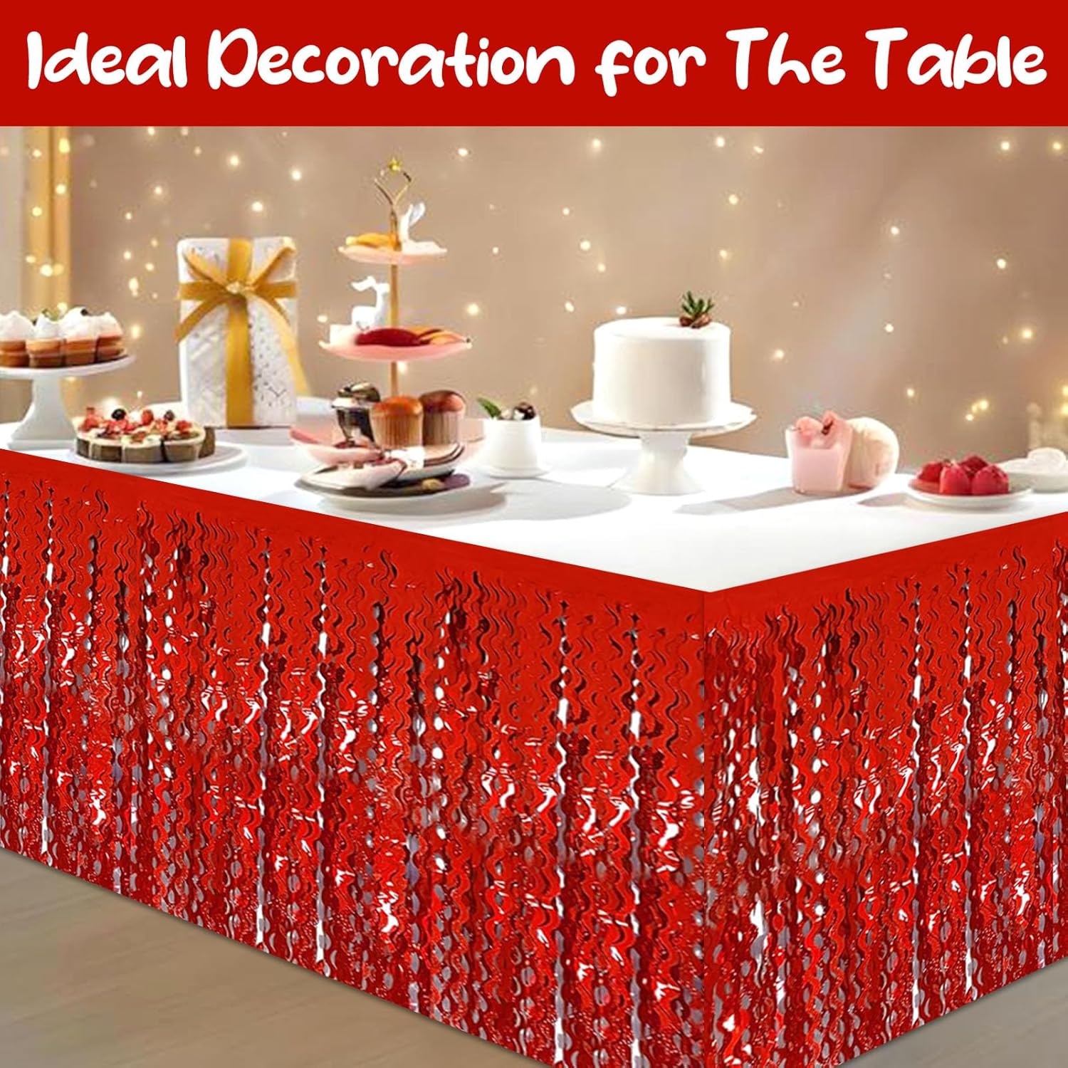 6Pack 29 x108 Inch Red Wave Foil Fringe Table Skirts Metallic Banner for Tinsel Streamer Garland Backdrop for Parade Floats, Mother's Day, Easter, Graduate, Birthday, Wedding Party Decoration