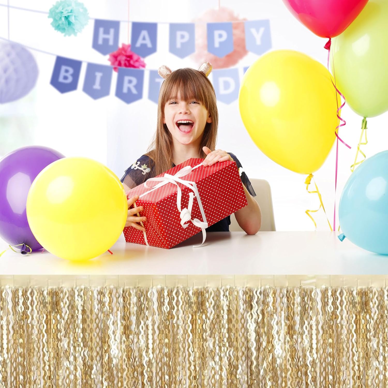 • Specifications and dimensions:6 Packs metallic foil tassel table skirt 29x108 inches, which is enough to decorate your party.