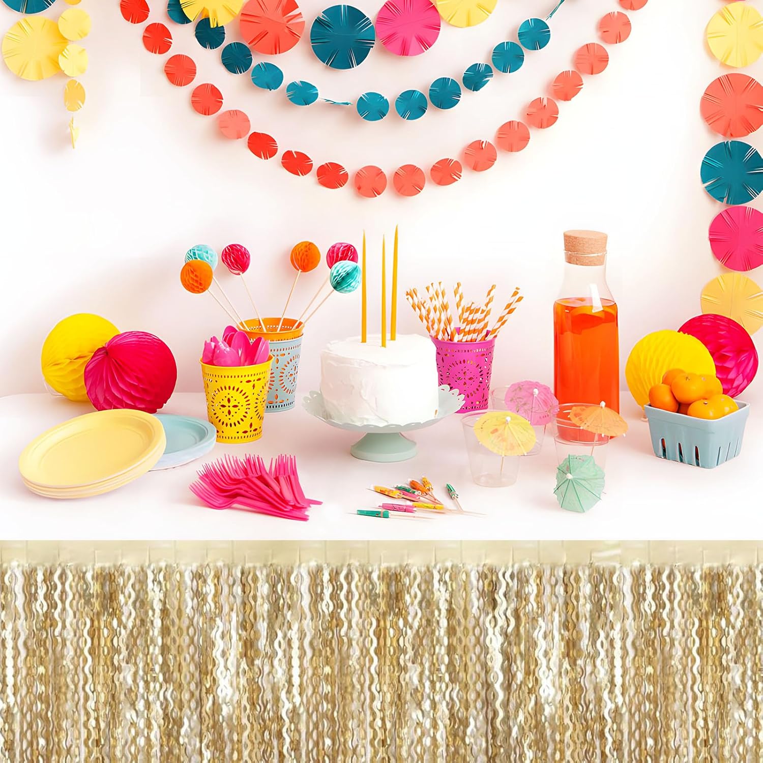 6 Pack 29 x108 Inch Champagne Gold Wave Foil Fringe Table Skirts Metallic Banner for Tinsel Streamer Garland Backdrop for Parade Floats, Mother's Day, Easter, Wedding, Birthday Party Decoration