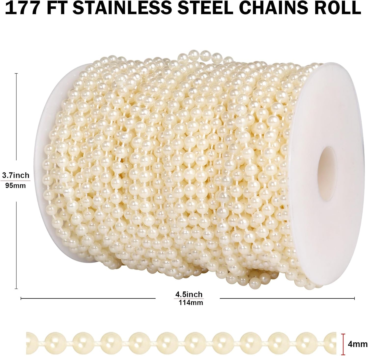 • ROLL SET: 4mm diameter pearl beads, 177 feet (54 meters) ivory color pearl beads garland roll spool.